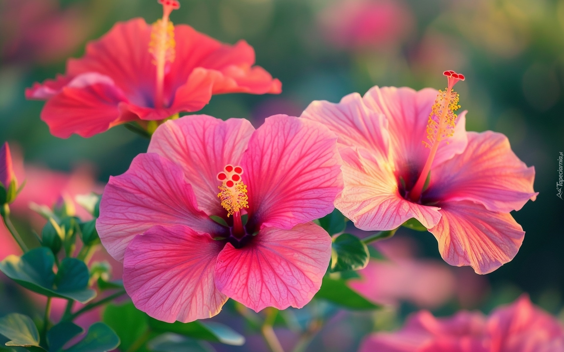 Edytor tapety: Rozświetlone różowe hibiskusy