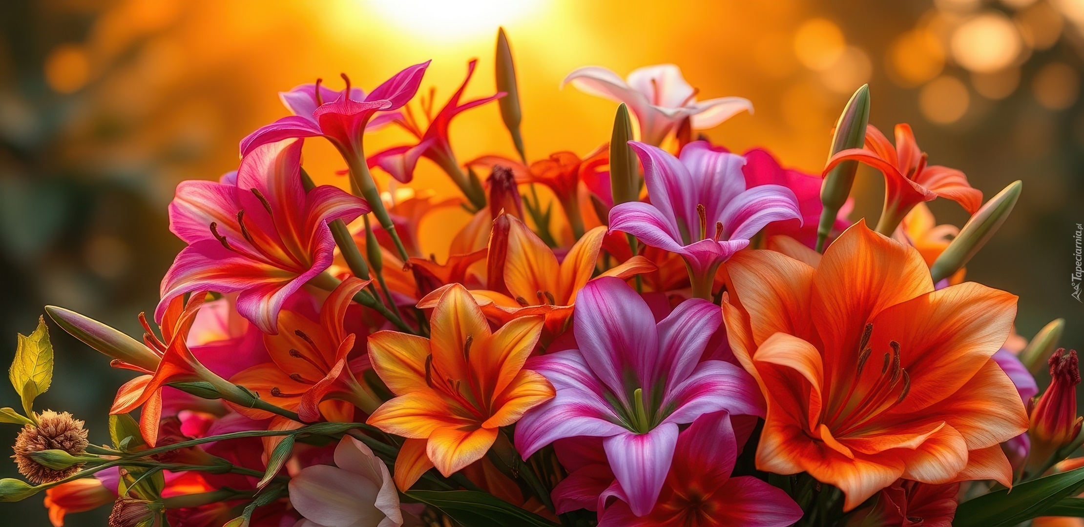 Edytor tapety: Kolorowe kwiaty i pąki w grafice