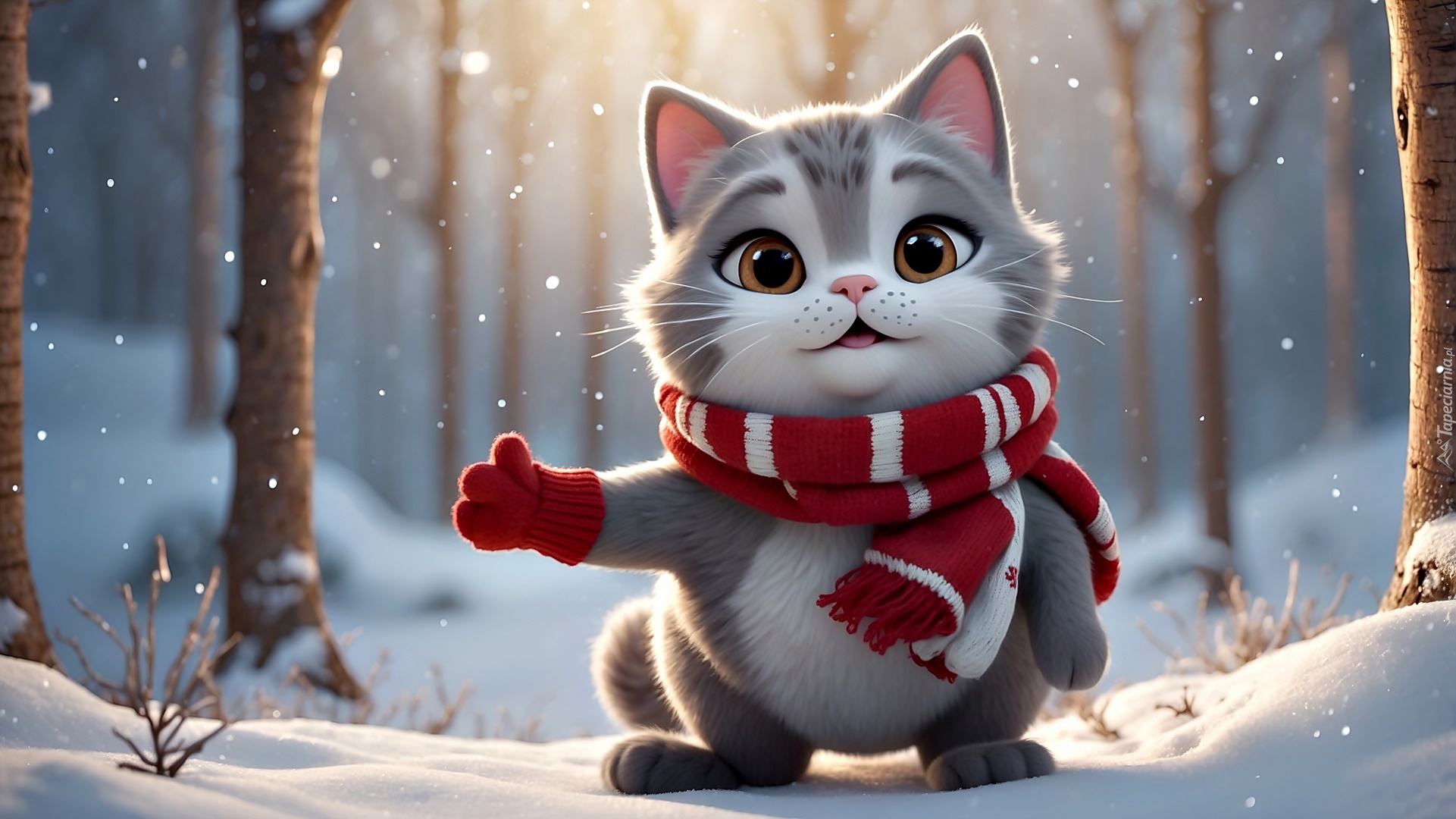 Edytor tapety: Kotek w szaliku w zimowym lesie