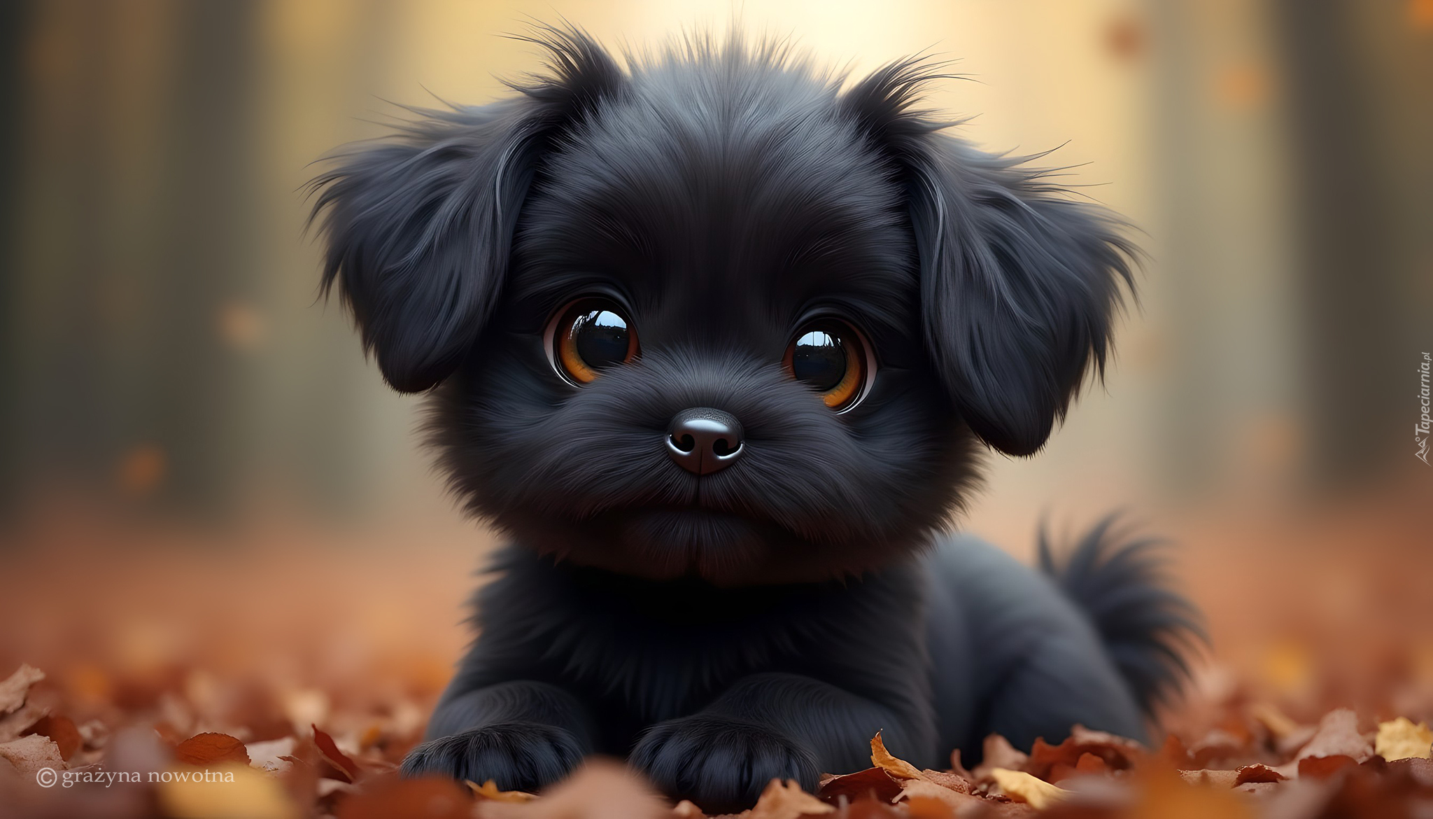 Edytor tapety: Słodki czarny piesek w grafice