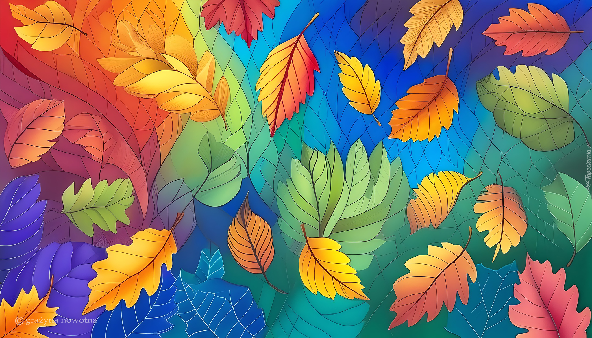 Edytor tapety: Kolorowe liście w grafice 2D