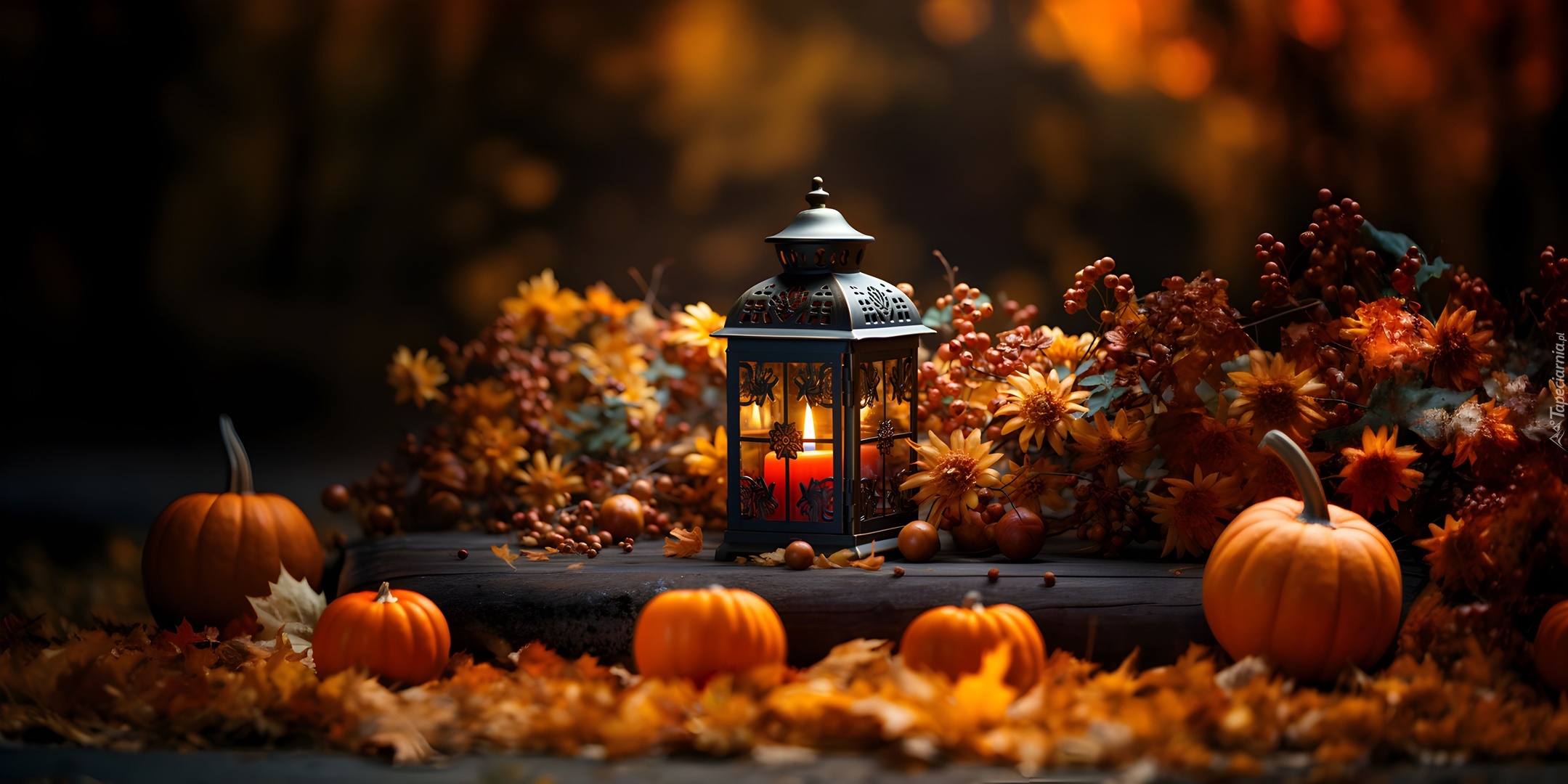 Edytor tapety: Jesienna dekoracja z dyniami i lampionem w grafice