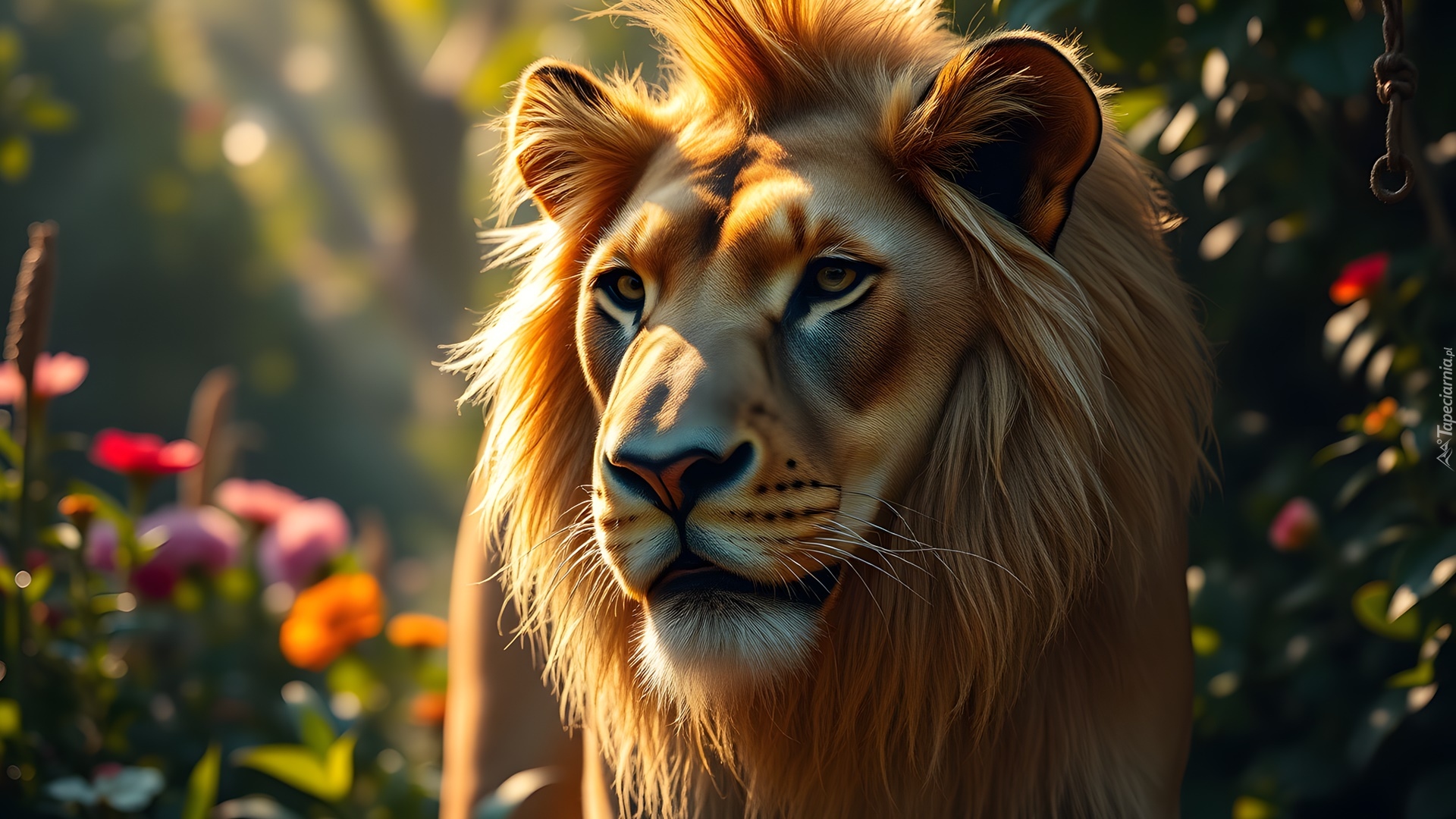 Edytor tapety: Głowa lwa z grzywą w grafice