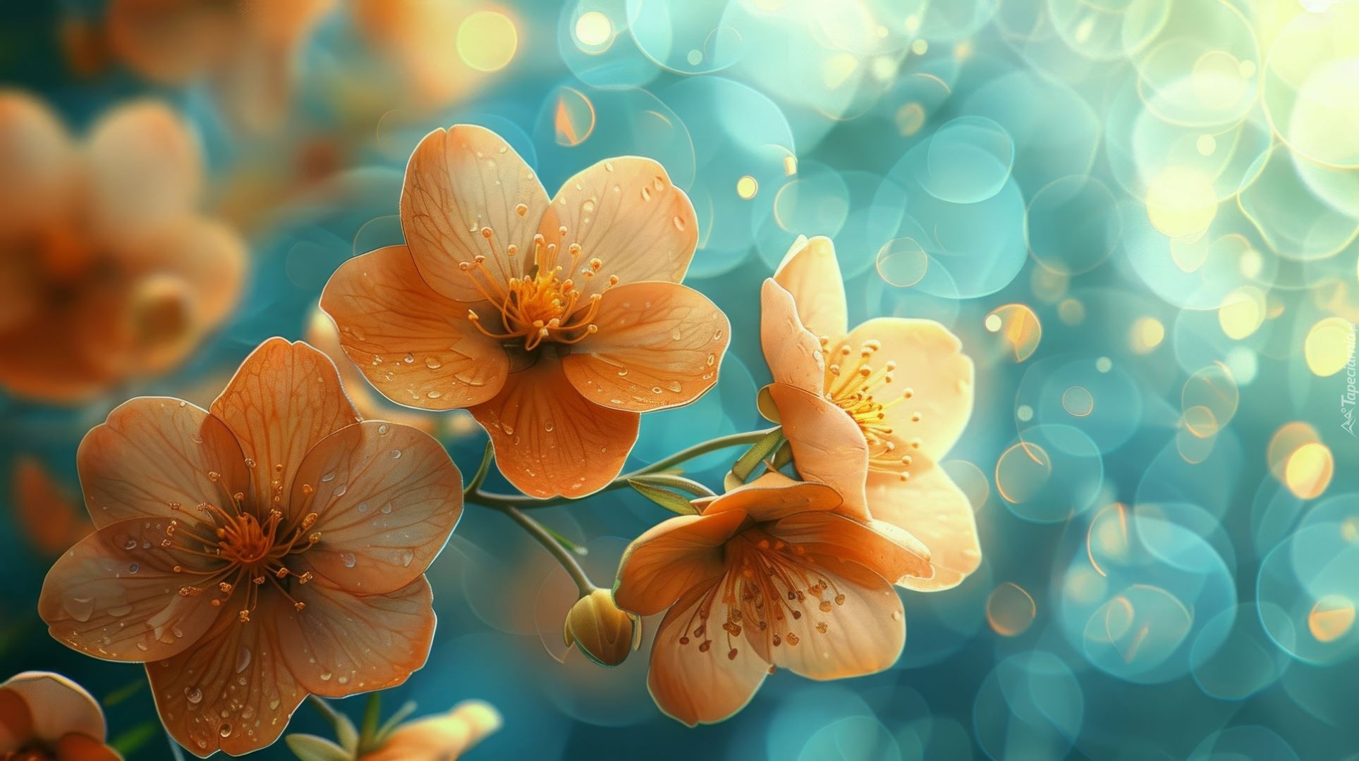 Edytor tapety: Pomarańczowe kwiaty i pąki na kolorowym tle