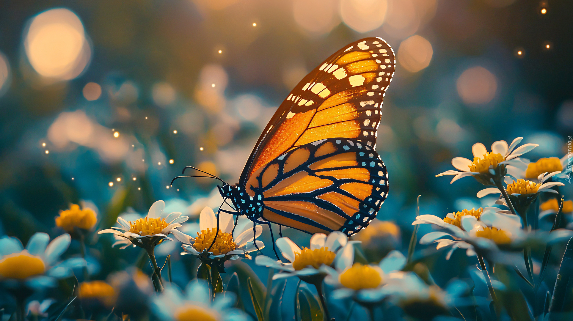 Edytor tapety: Żółty motyl na białych rumianach