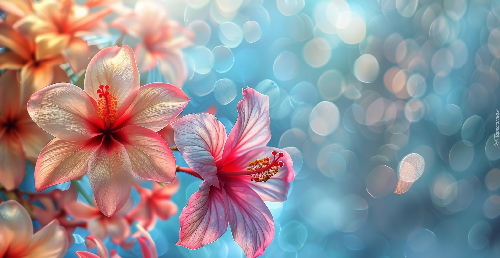 Edytor tapety: Różowe kwiaty na rozmytym tle w grafice