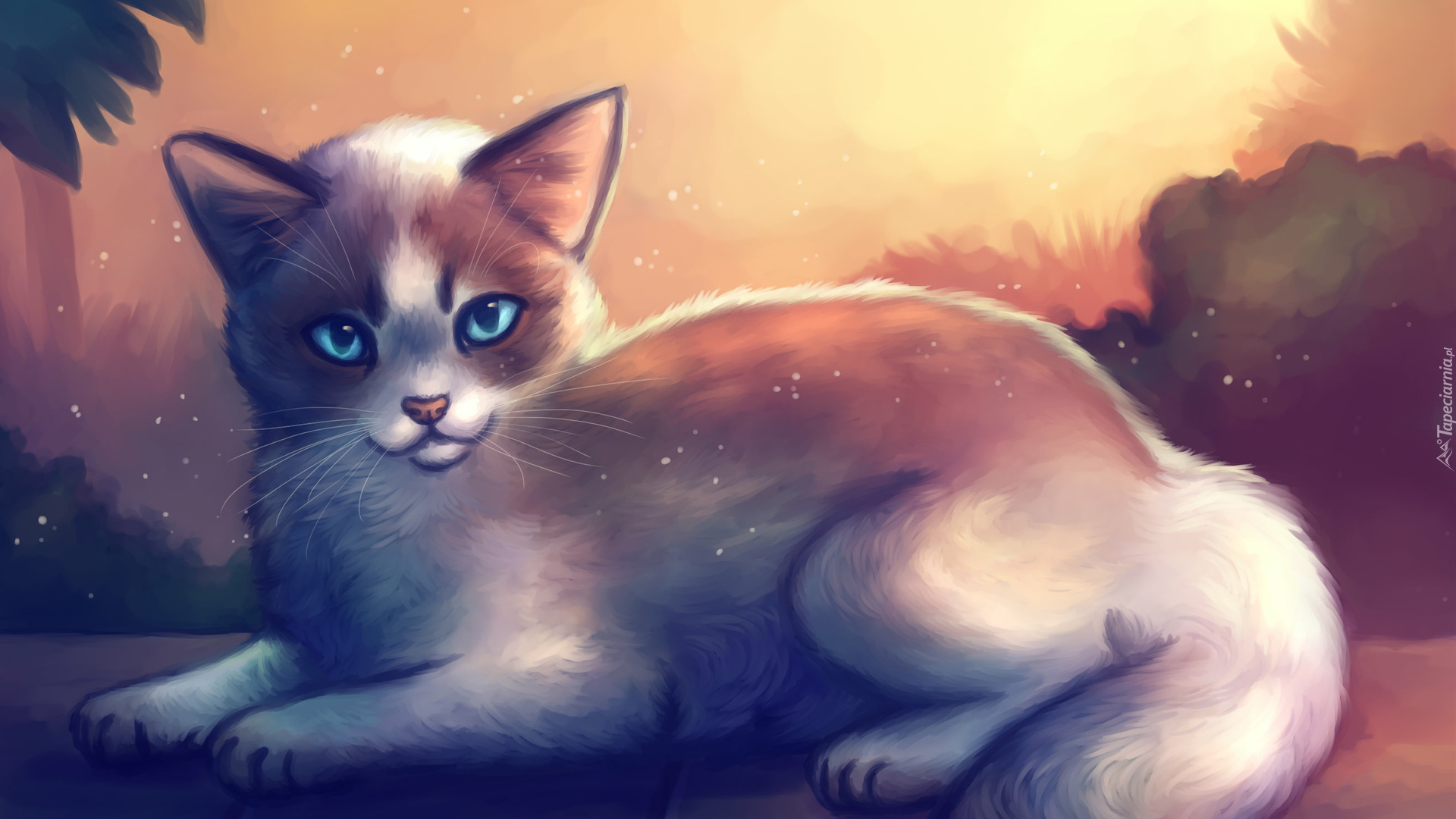 Edytor tapety: Leżący niebieskooki kot w grafice