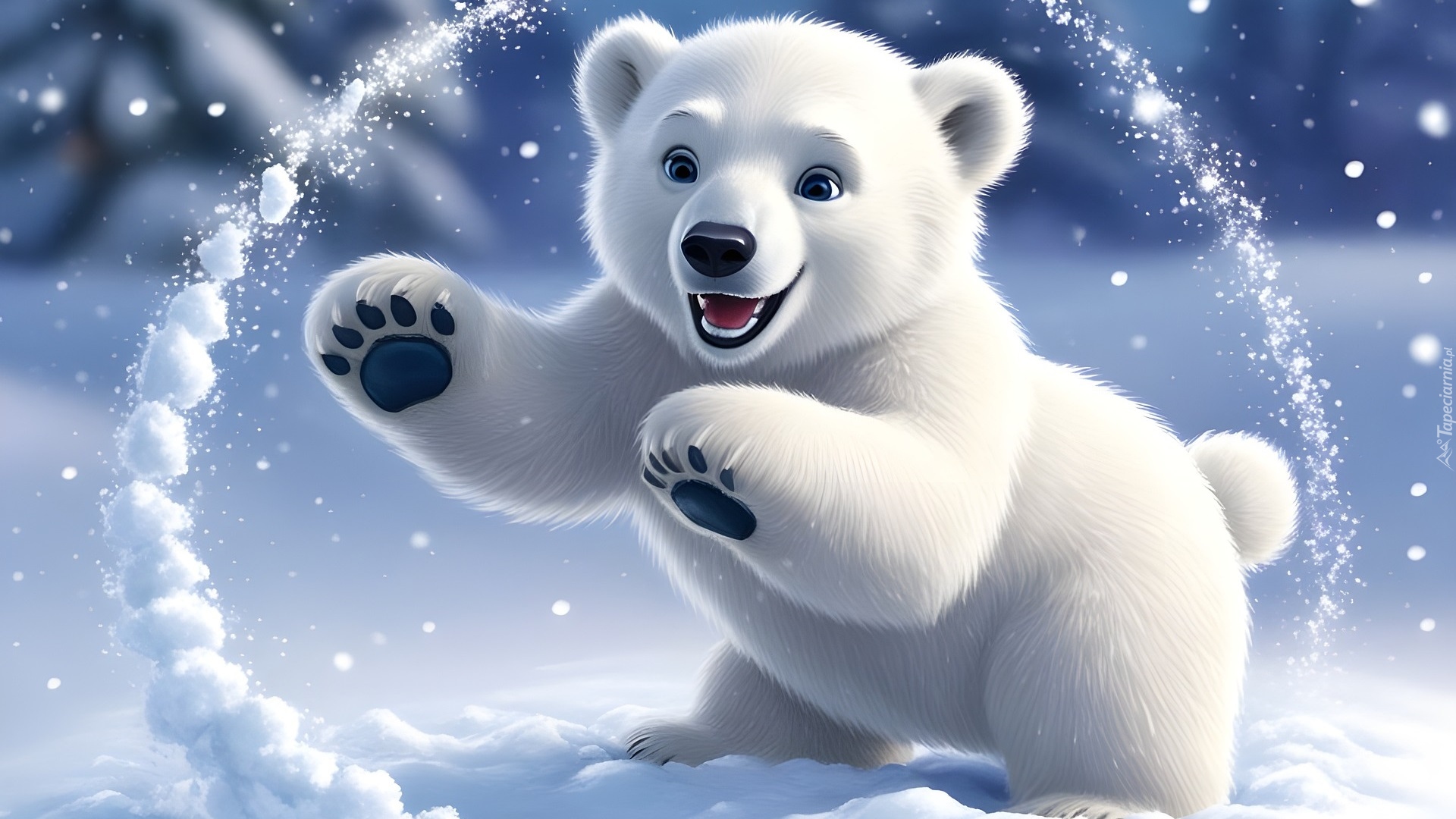 Edytor tapety: Mały biały niedźwiadek na śniegu
