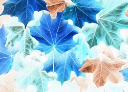 Edytor tapety: Krople na kolorowych jesiennych liściach