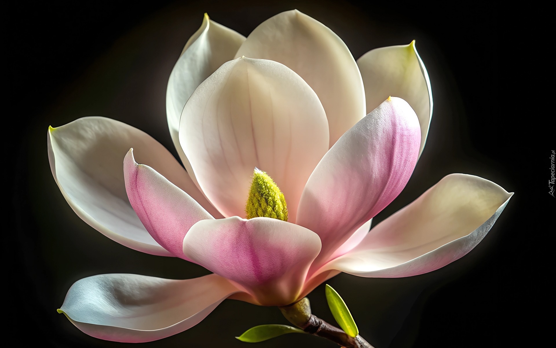 Edytor tapety: Rozwinięty kwiat magnolii na czarnym tle