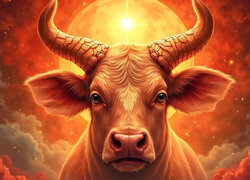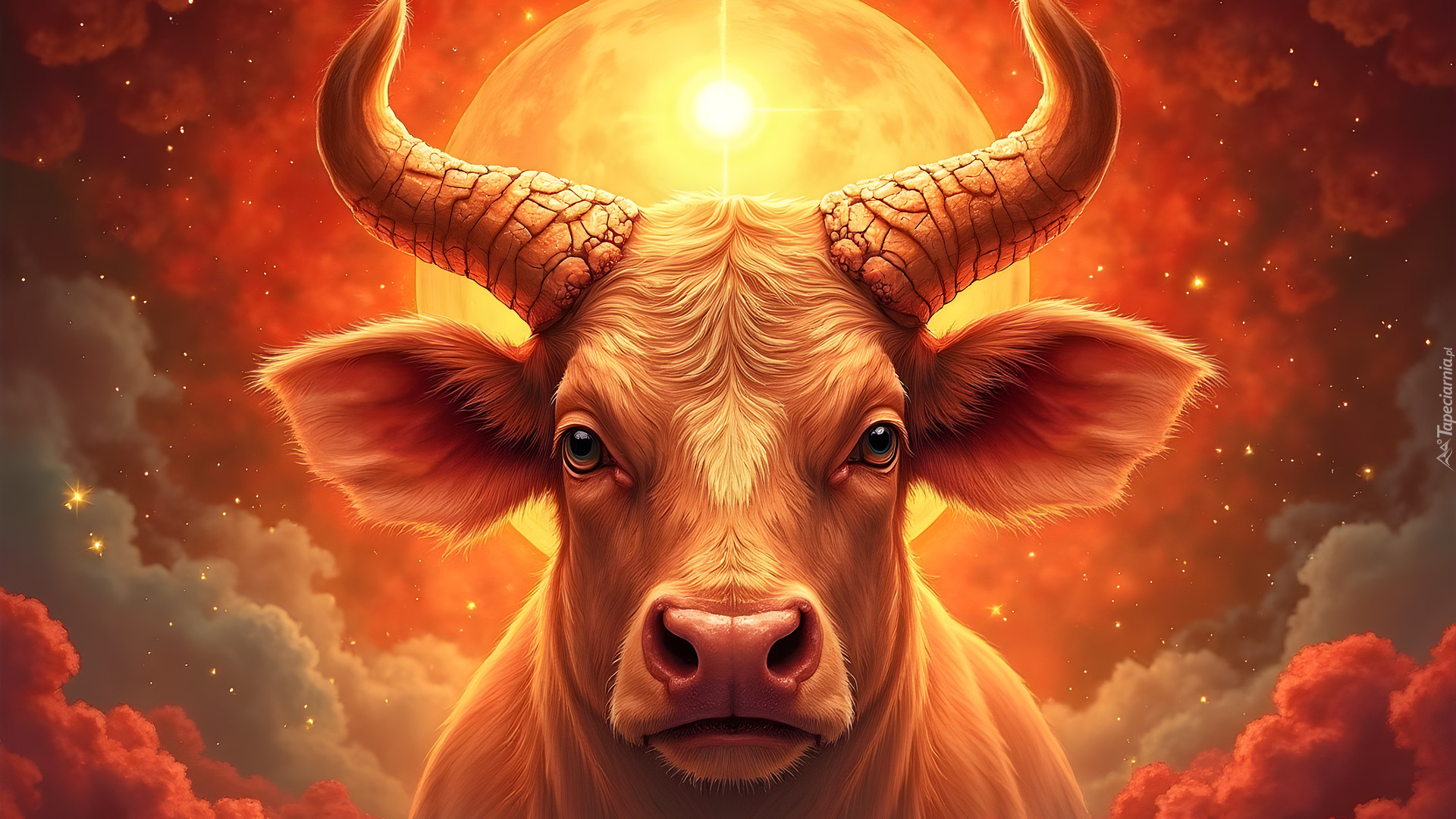 Edytor tapety: Znak zodiaku Byk na tle słońca w grafice