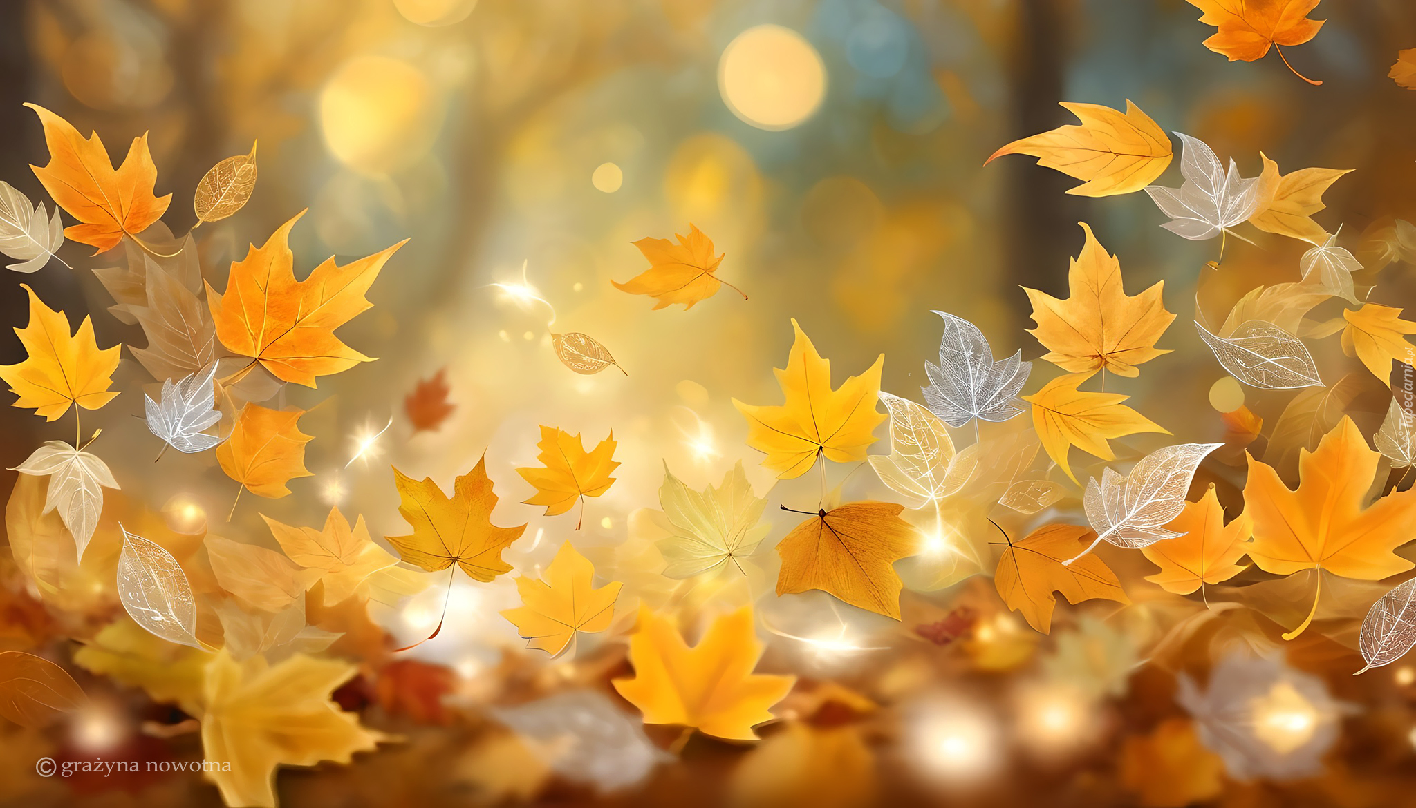 Edytor tapety: Jesienne żółte liście w grafice