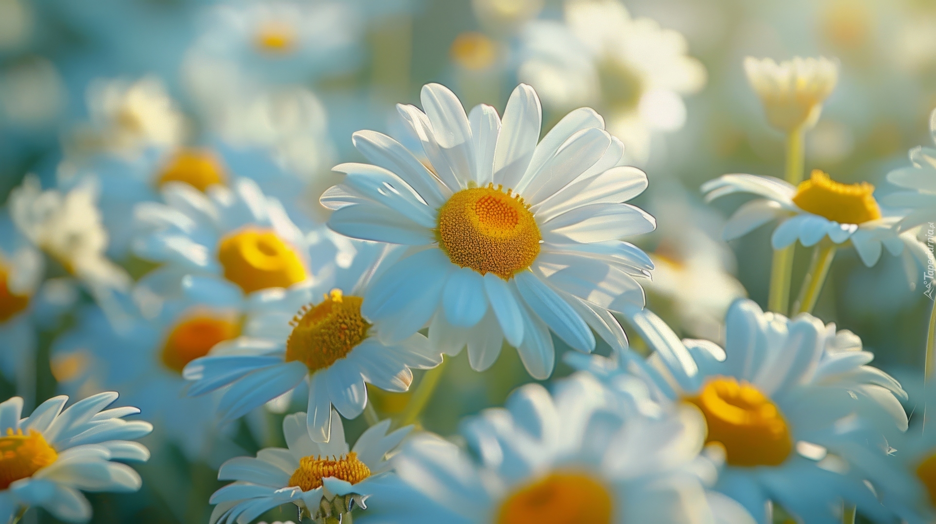 Edytor tapety: Rozświetlone światłem rozwinięte białe kwiaty