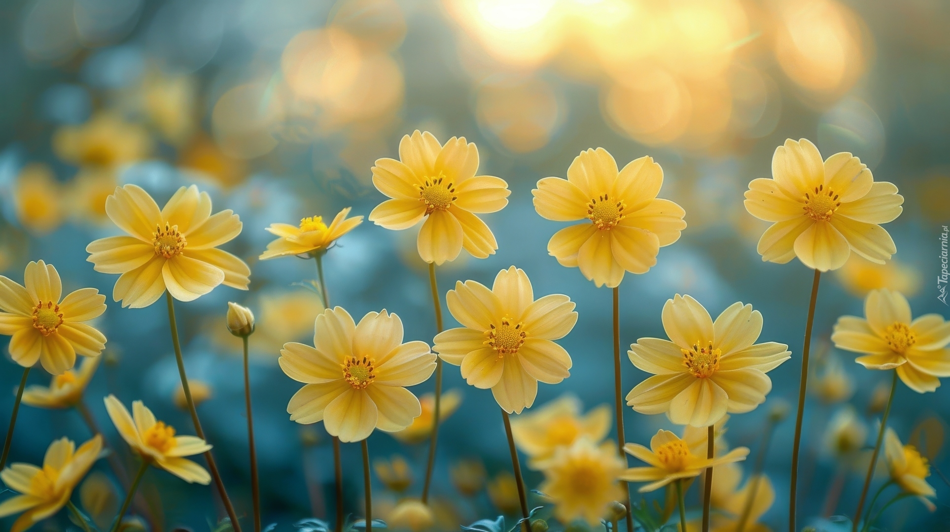 Edytor tapety: Rozkwitnięte żółte kwiaty w zbliżeniu