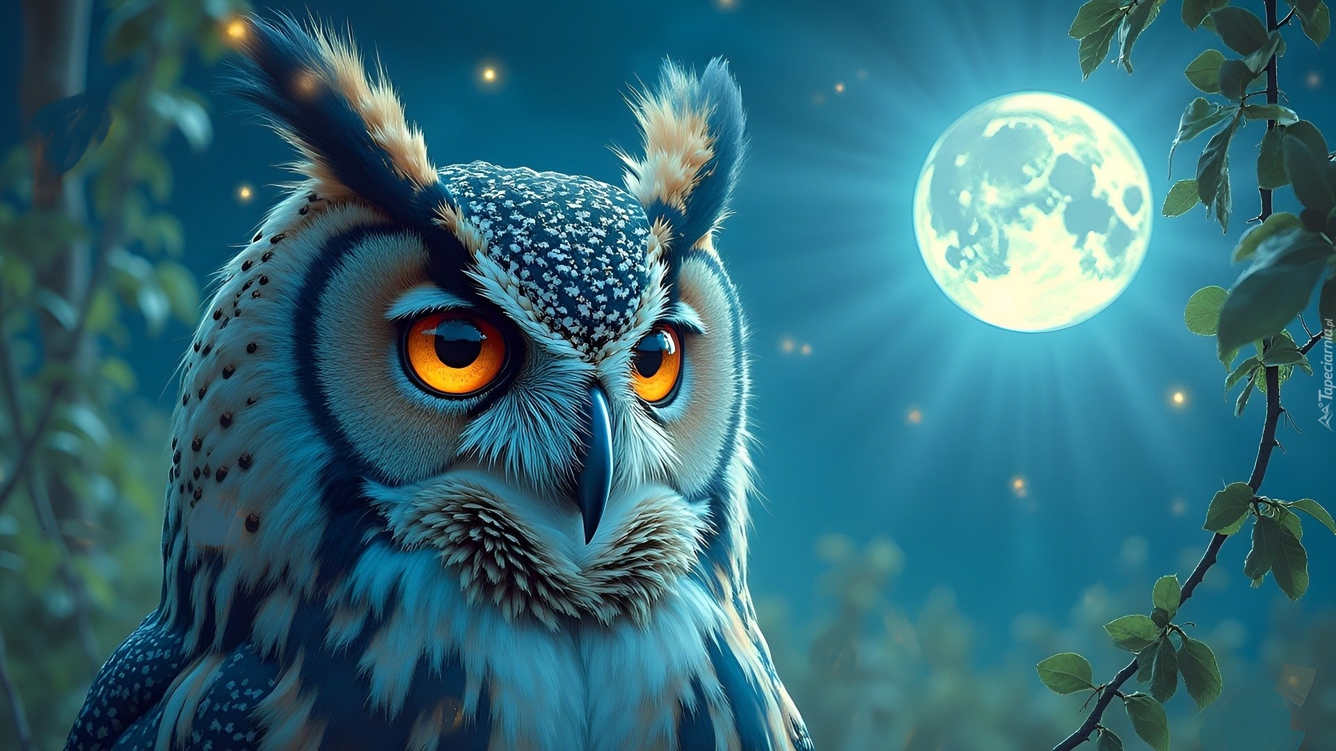 Edytor tapety: Sowa na tle księżyca w pełni