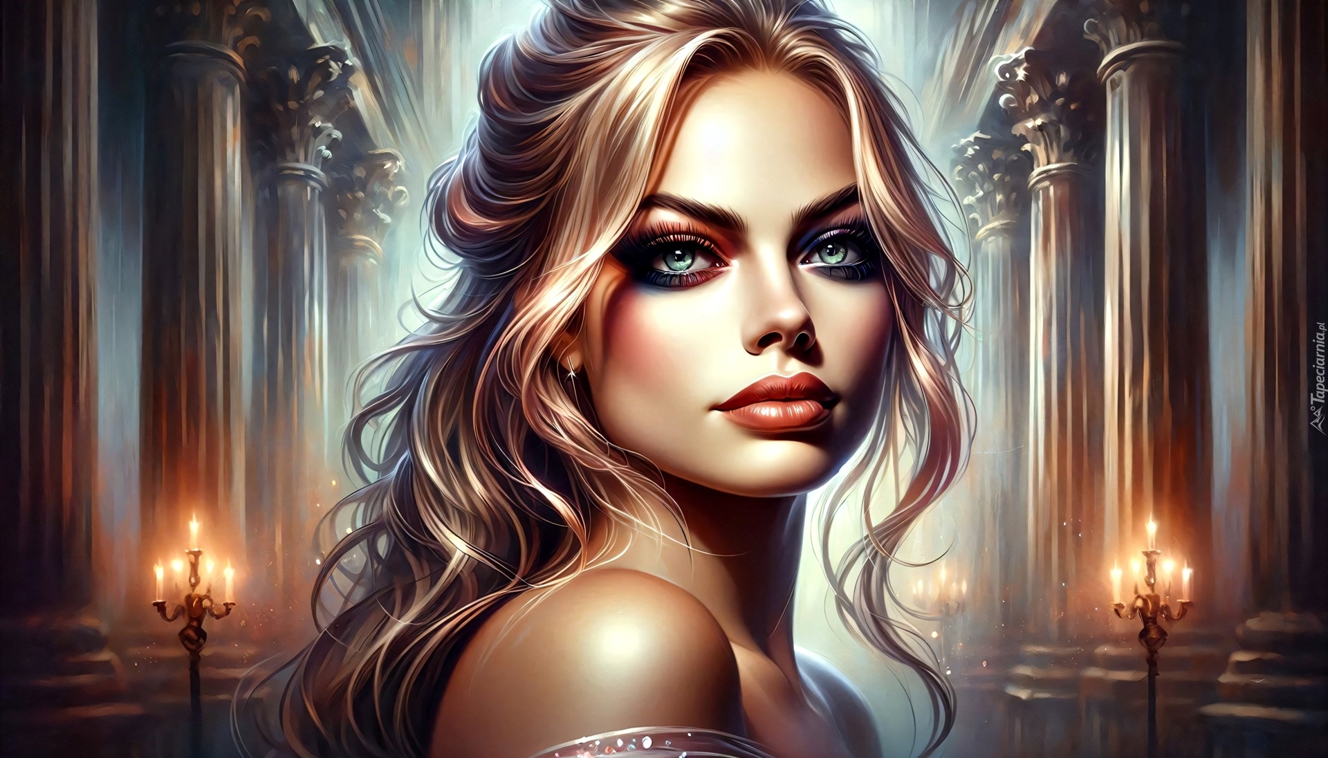 Edytor tapety: Spojrzenie długowłosej blondynki w grafice