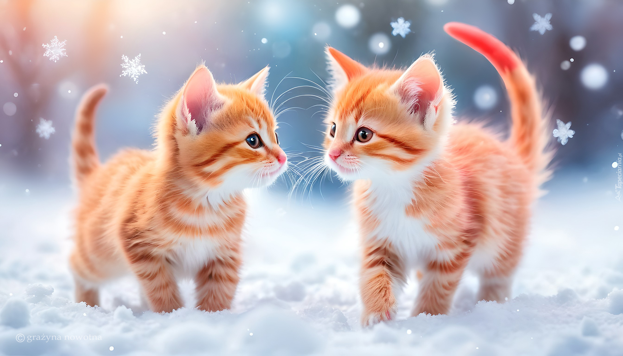 Edytor tapety: Dwa małe rude kotki na śniegu w grafice