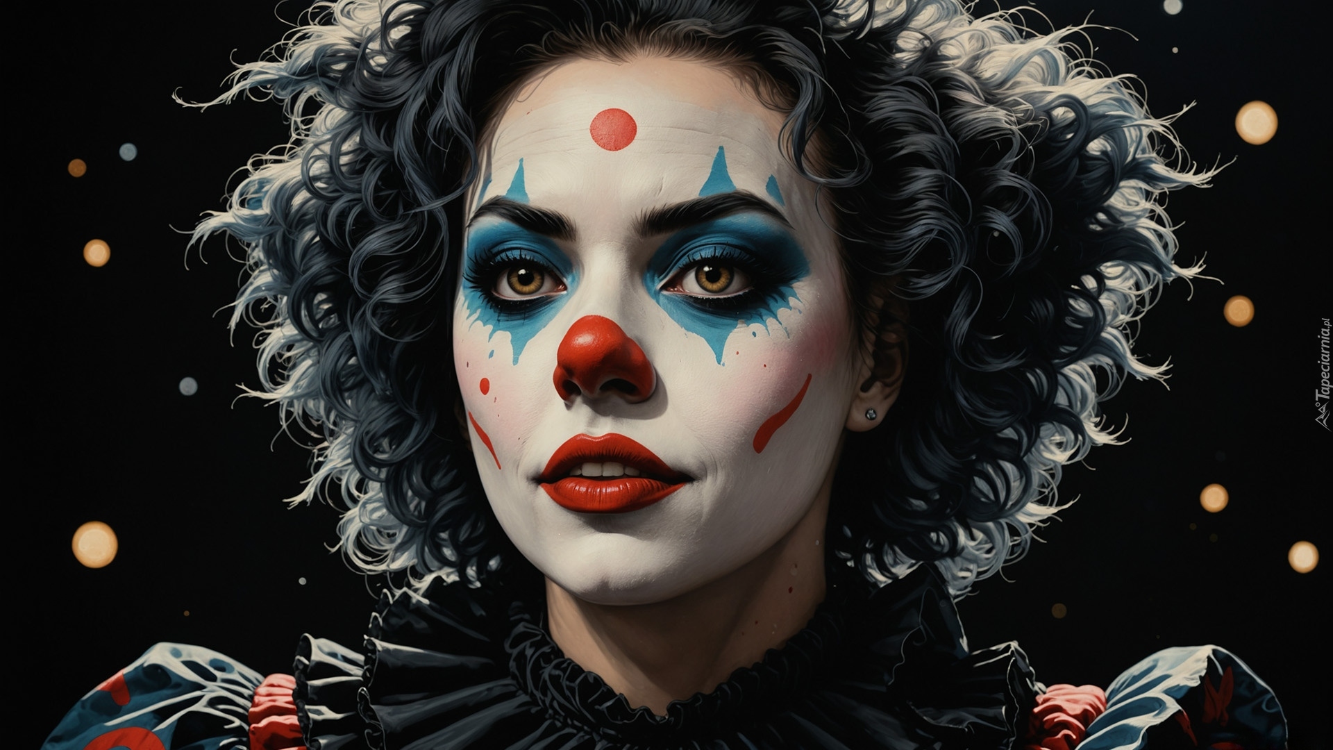 Edytor tapety: Kobieta klaun na ciemnym tle