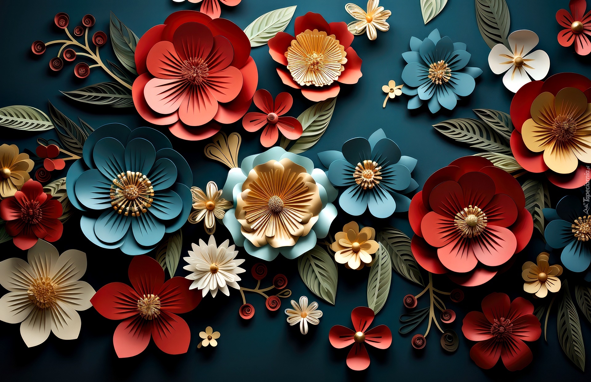 Edytor tapety: Kolorowe papierowe kwiaty w grafice