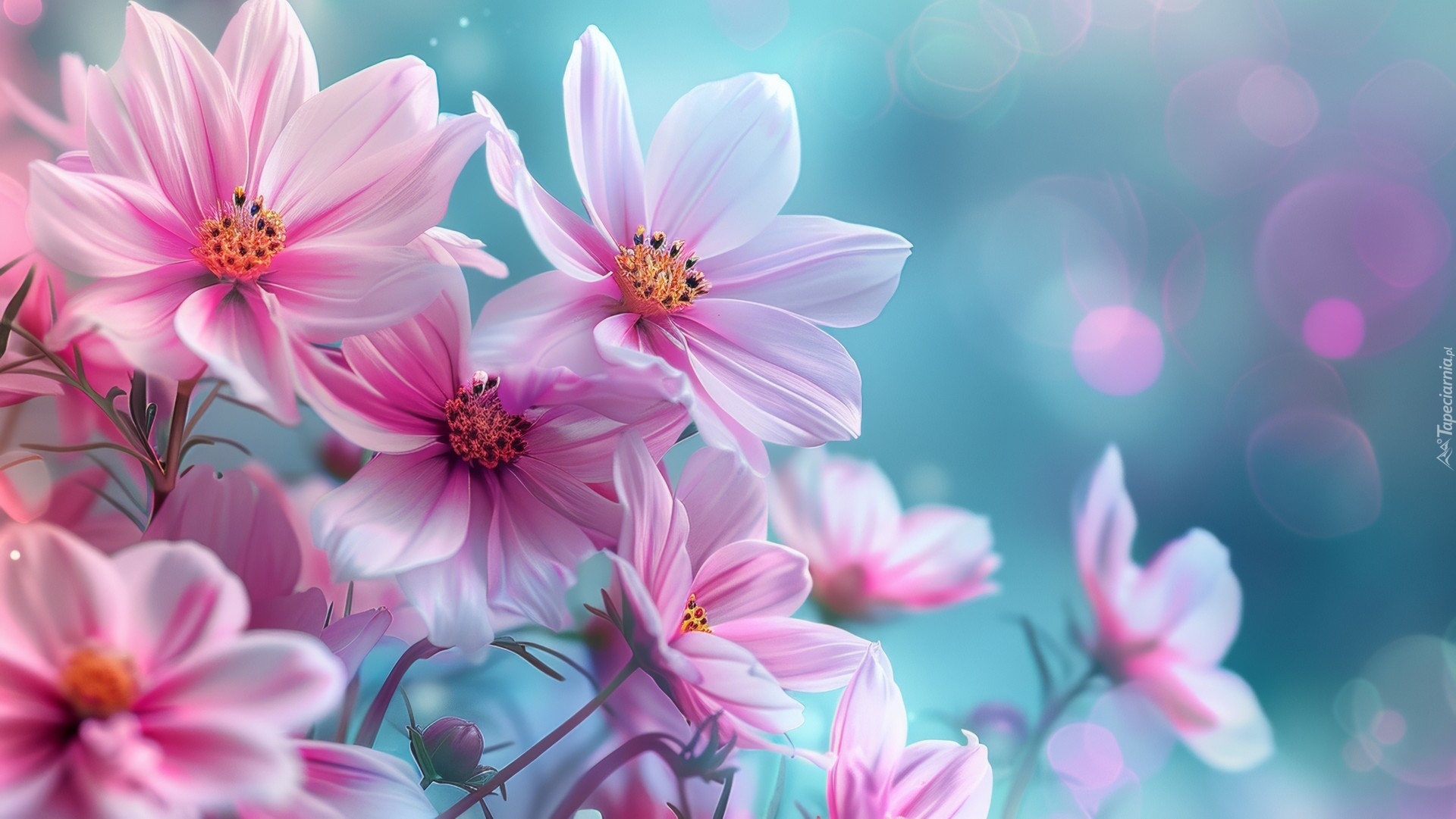 Edytor tapety: Rozkwitnięte różowe kosmee