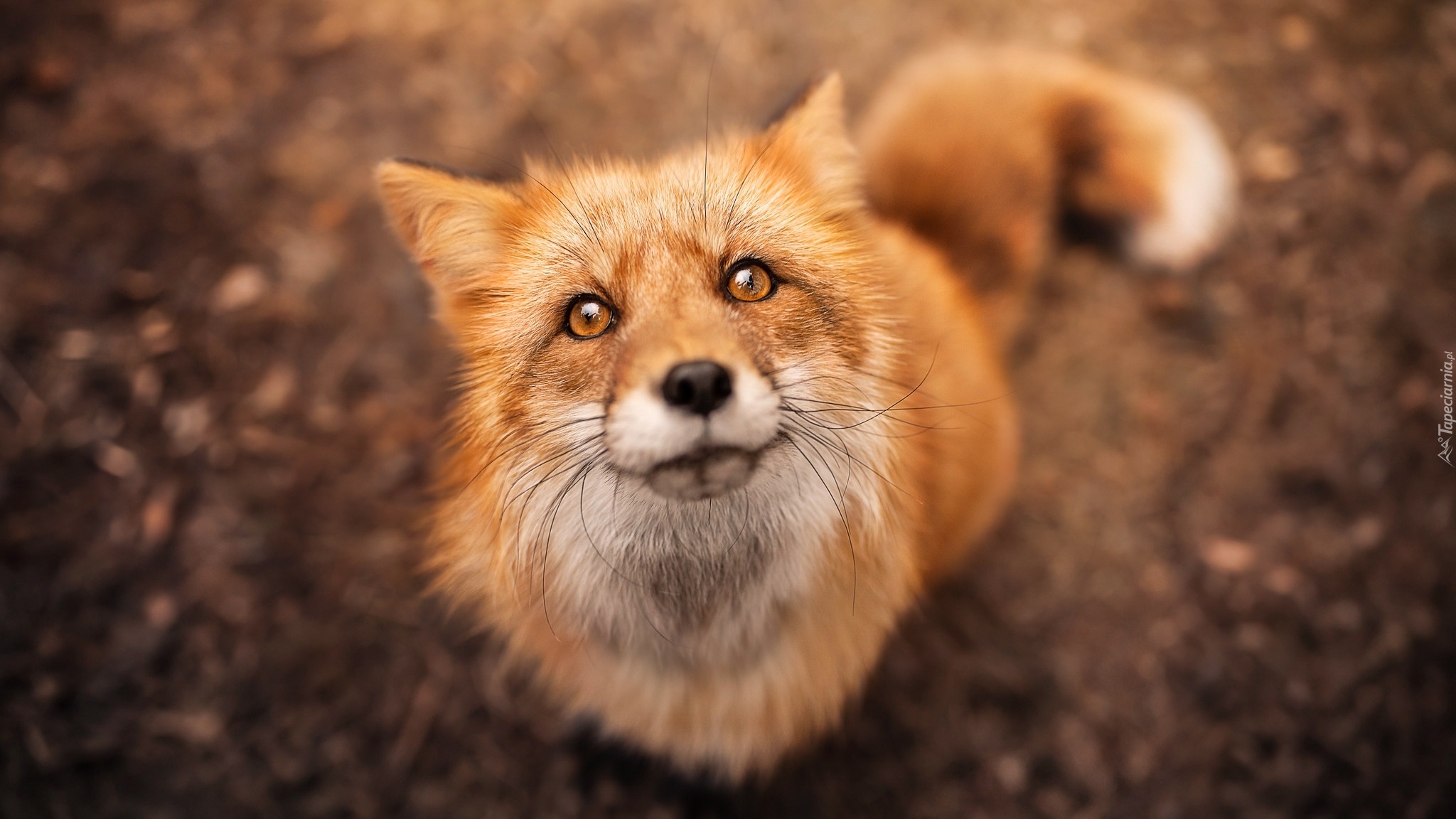 Edytor tapety: Rudy lis patrzący w górę