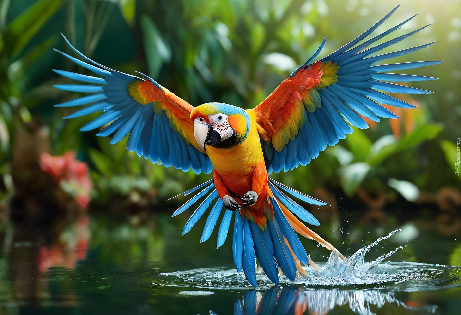 Edytor tapety: Ara w locie nad wodą