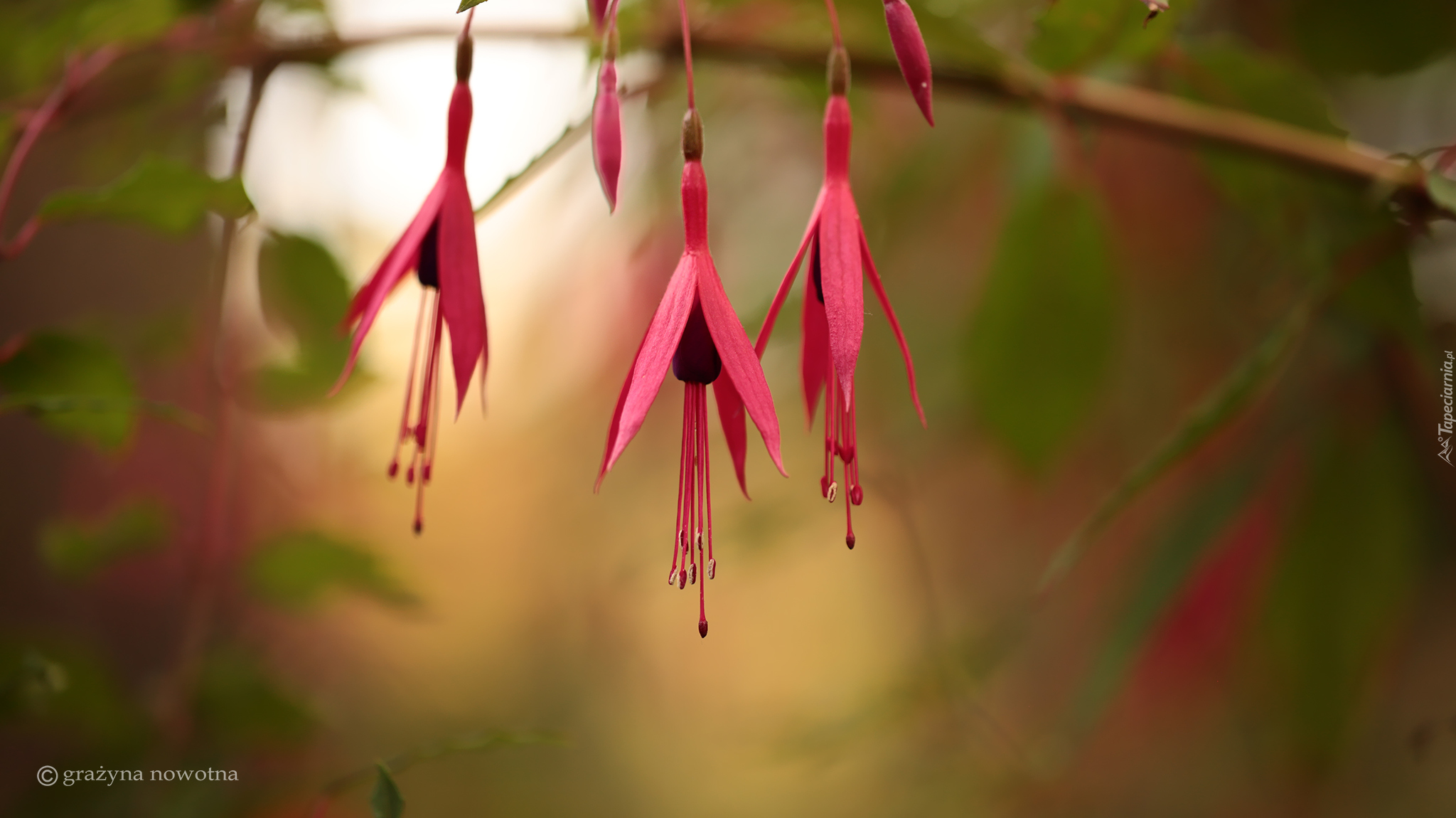 Edytor tapety: Różowe kwiaty fuksji na gałązce