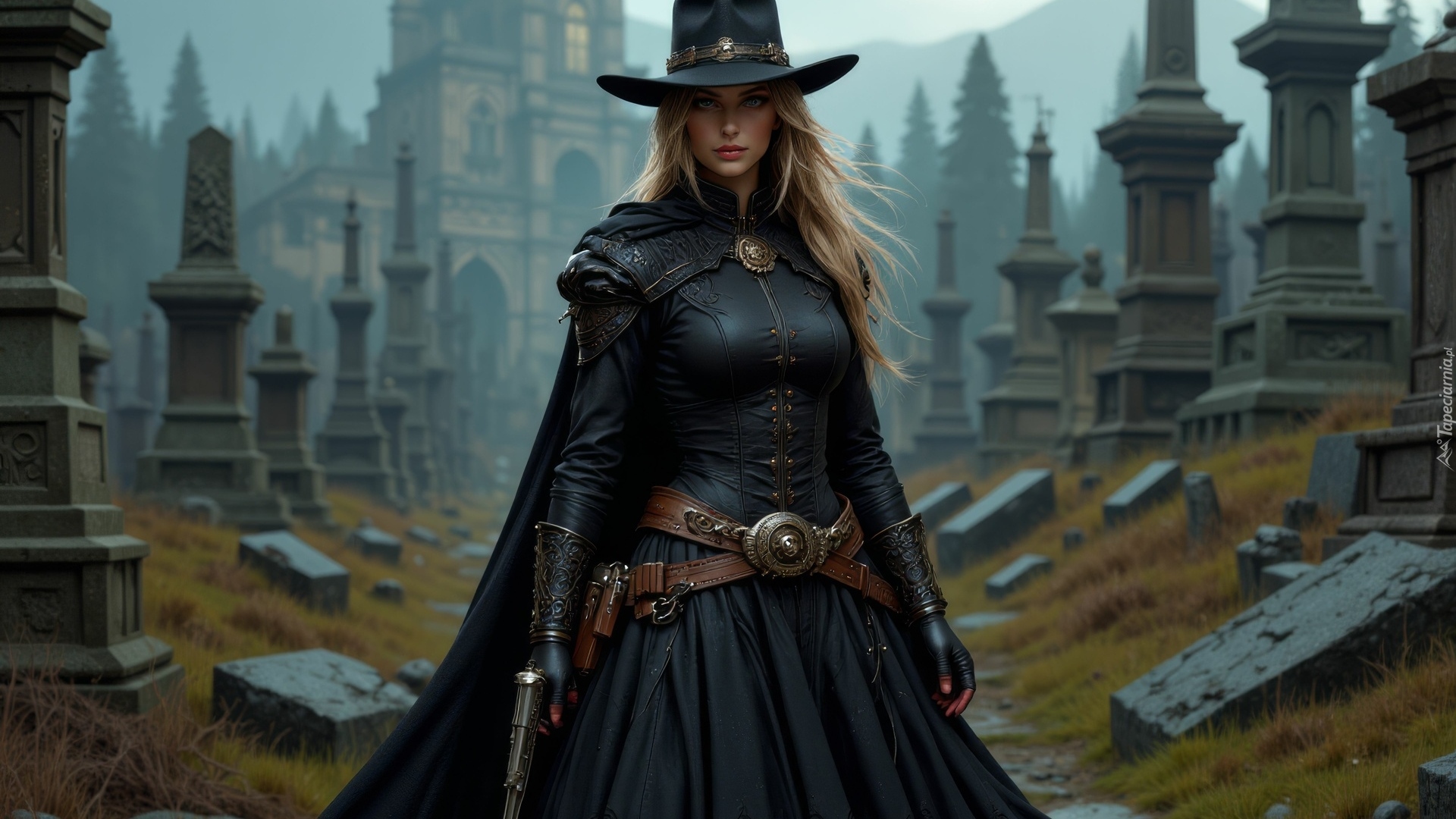 Edytor tapety: Dziewczyna w stroju kowbojki w grafice