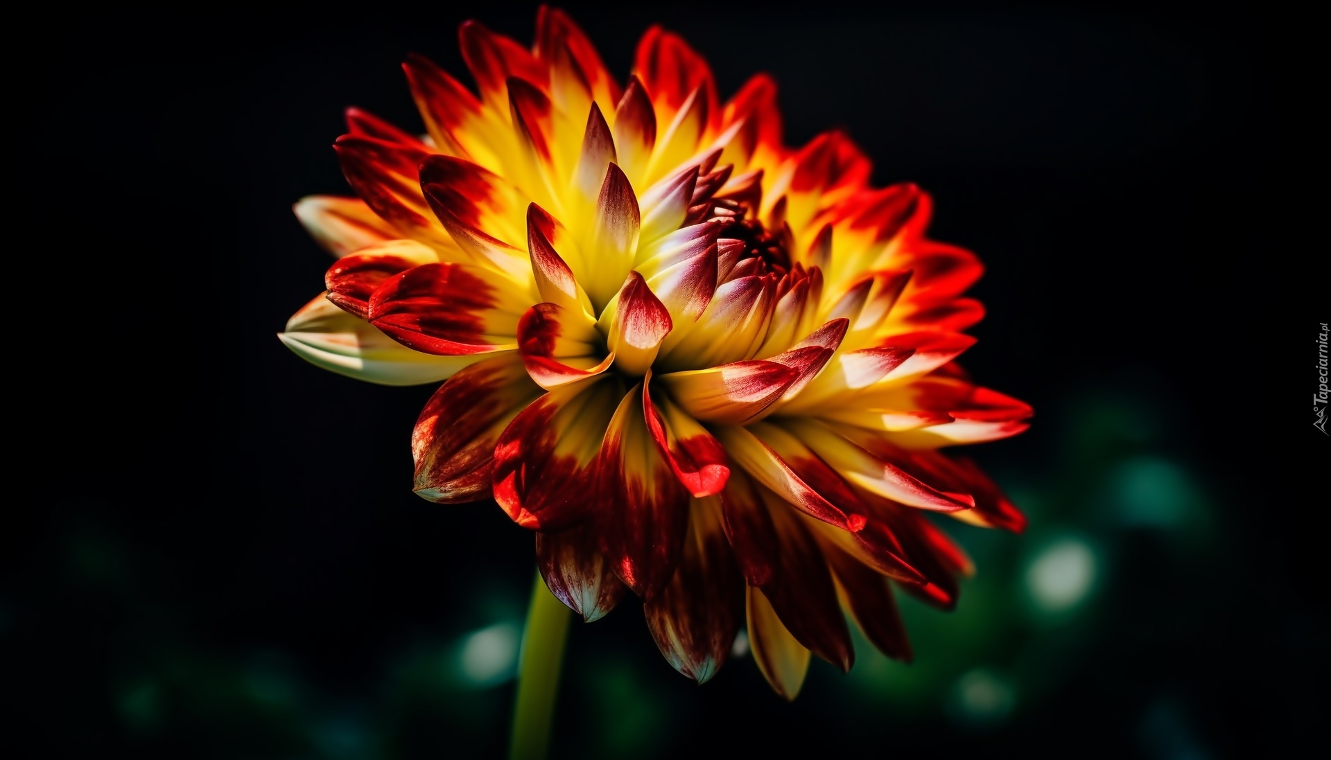 Edytor tapety: Rozkwitnięta pomarańczowa dalia na ciemnym tle