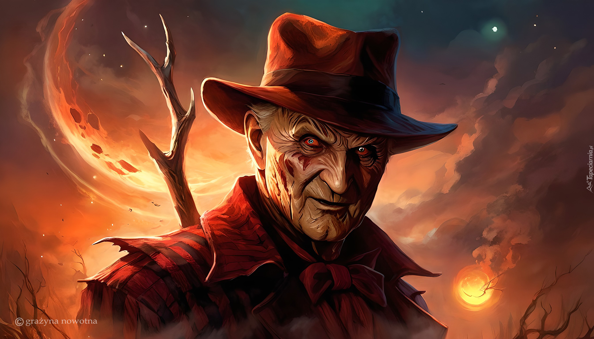Edytor tapety: Freddy Krueger jako postać z horroru w grafice