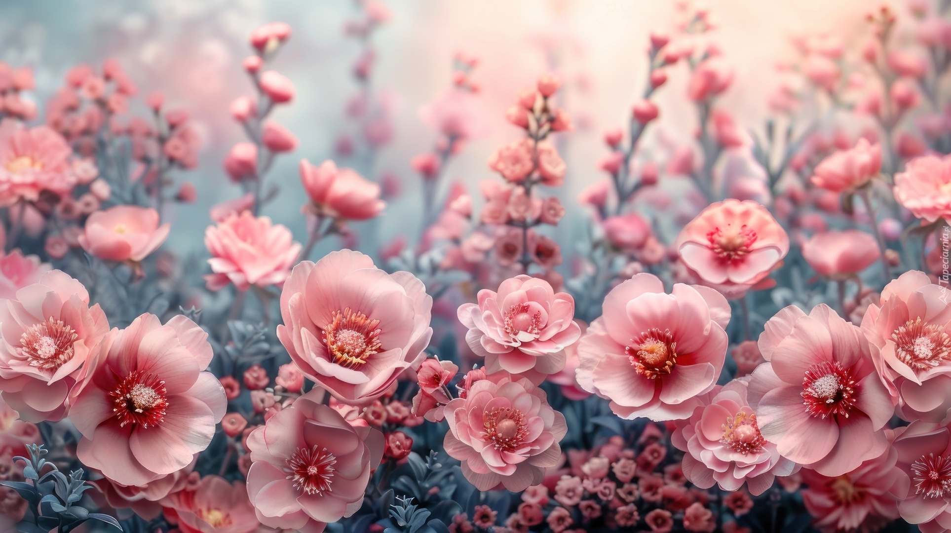 Edytor tapety: Rozwinięte różowe kwiaty na rozmytym tle