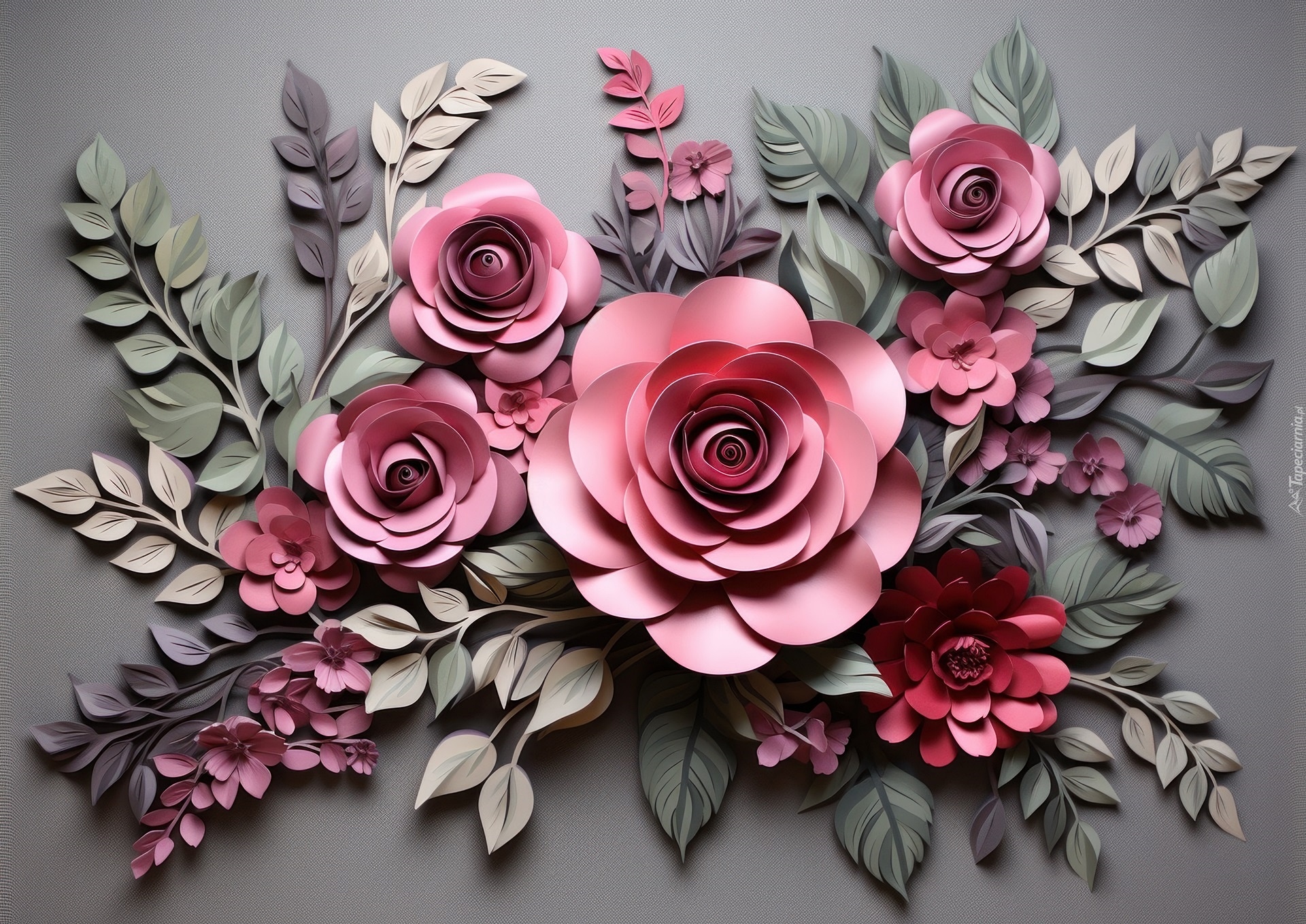 Edytor tapety: Różowe kwiaty na szarym tle