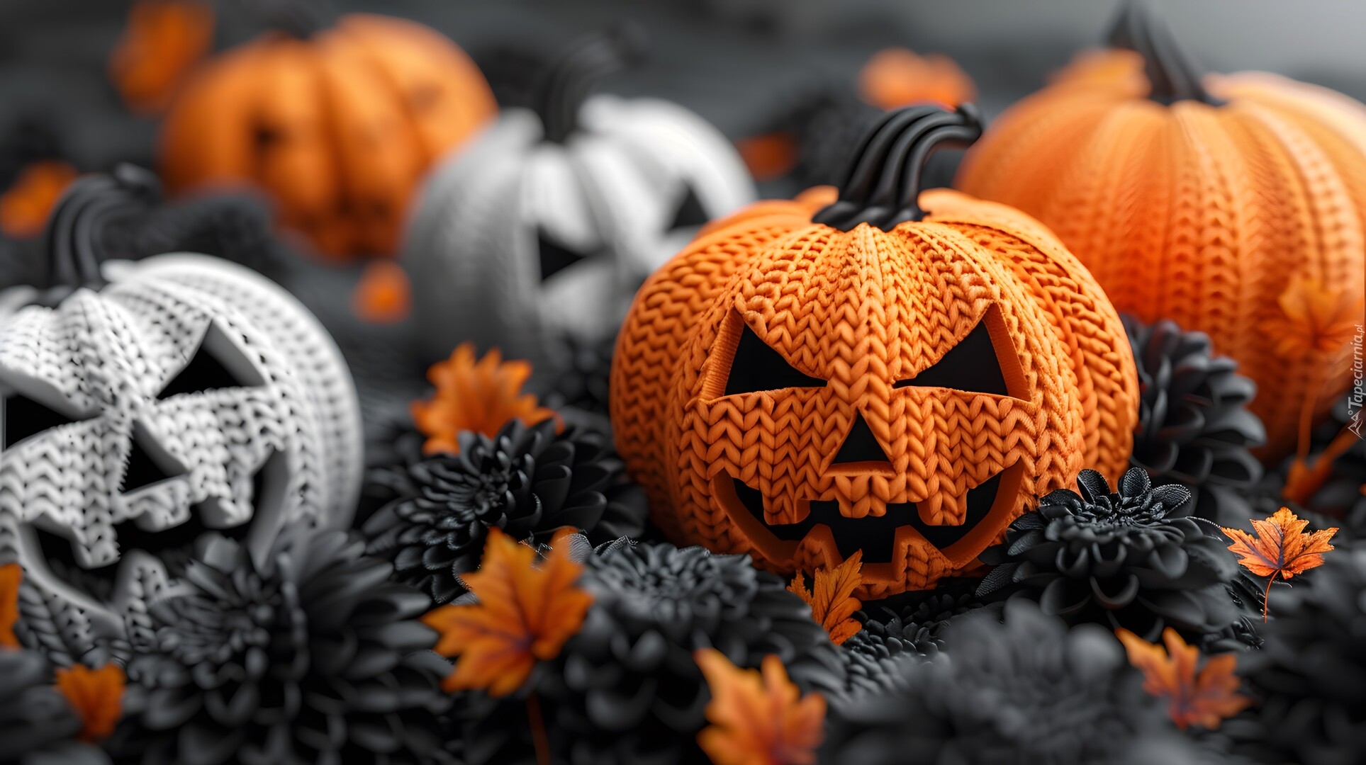 Edytor tapety: Pomarańczowe i białe dynie na czarnych kwiatach