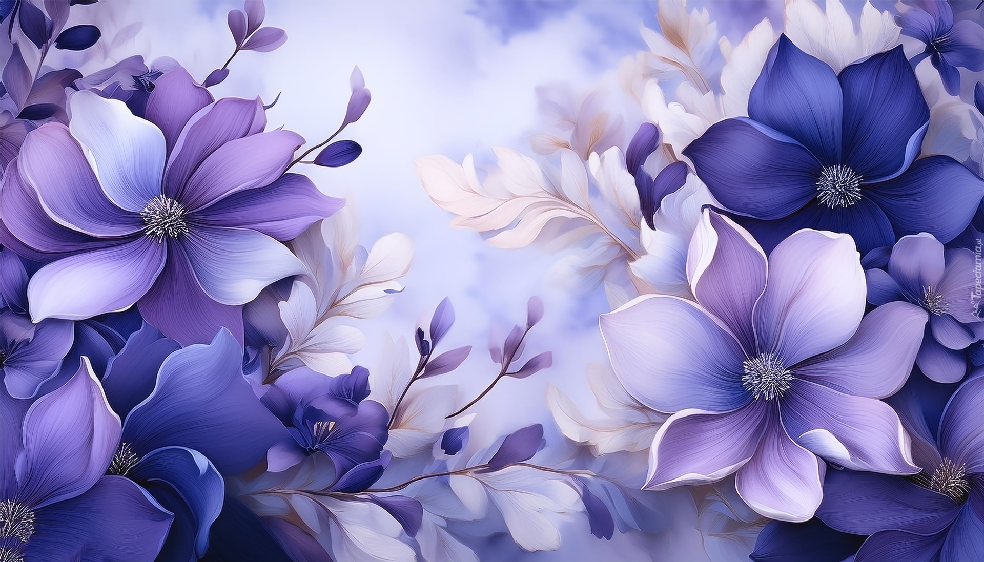 Edytor tapety: Niebieskie i fioletowe kwiaty w grafice