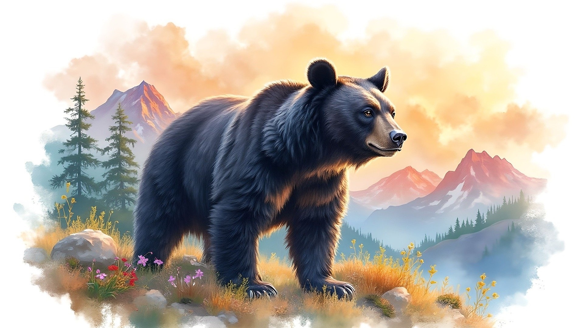 Edytor tapety: Grafika z niedźwiedziem na tle gór