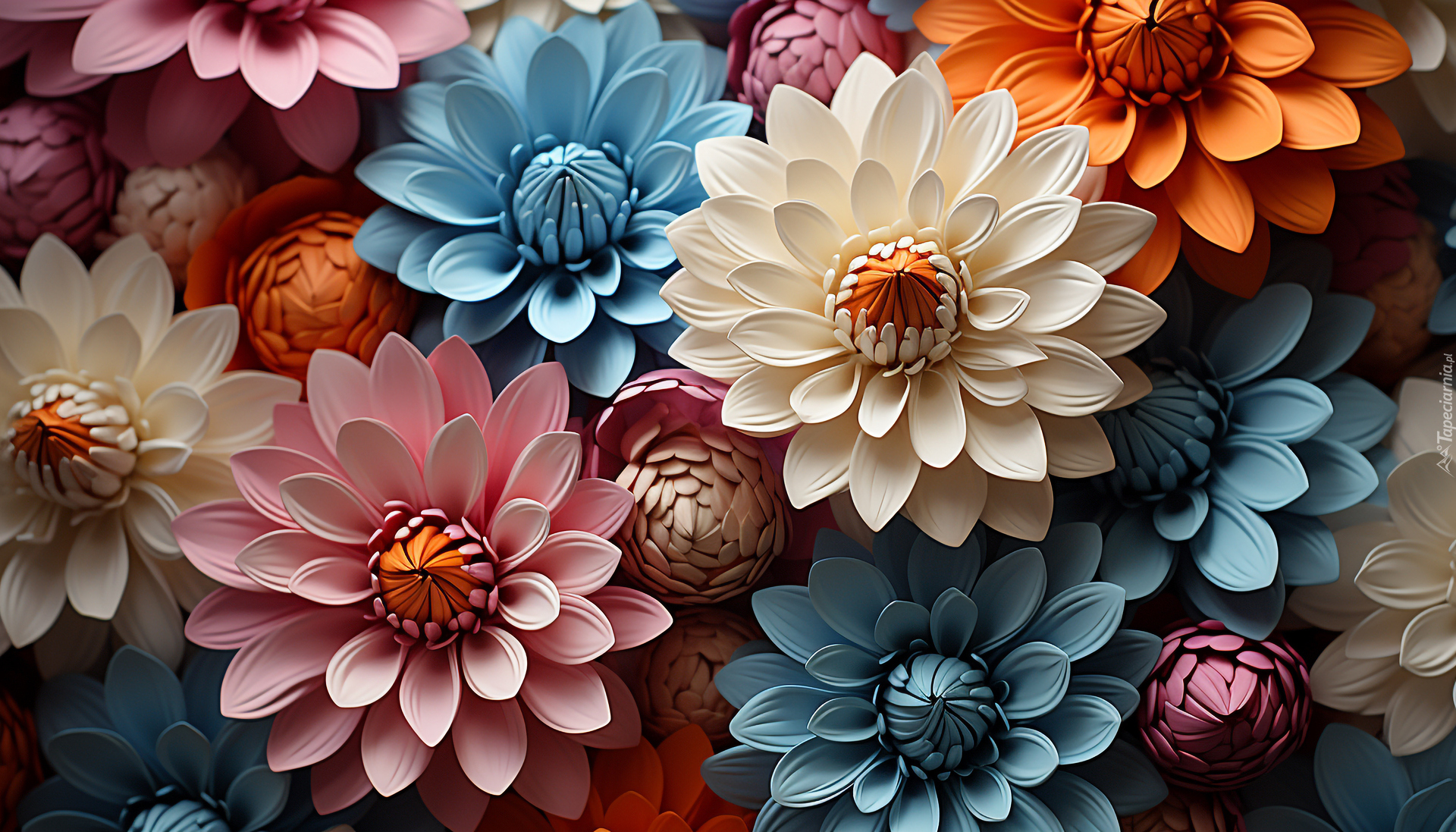 Edytor tapety: Papierowe kolorowe kwiaty w grafice
