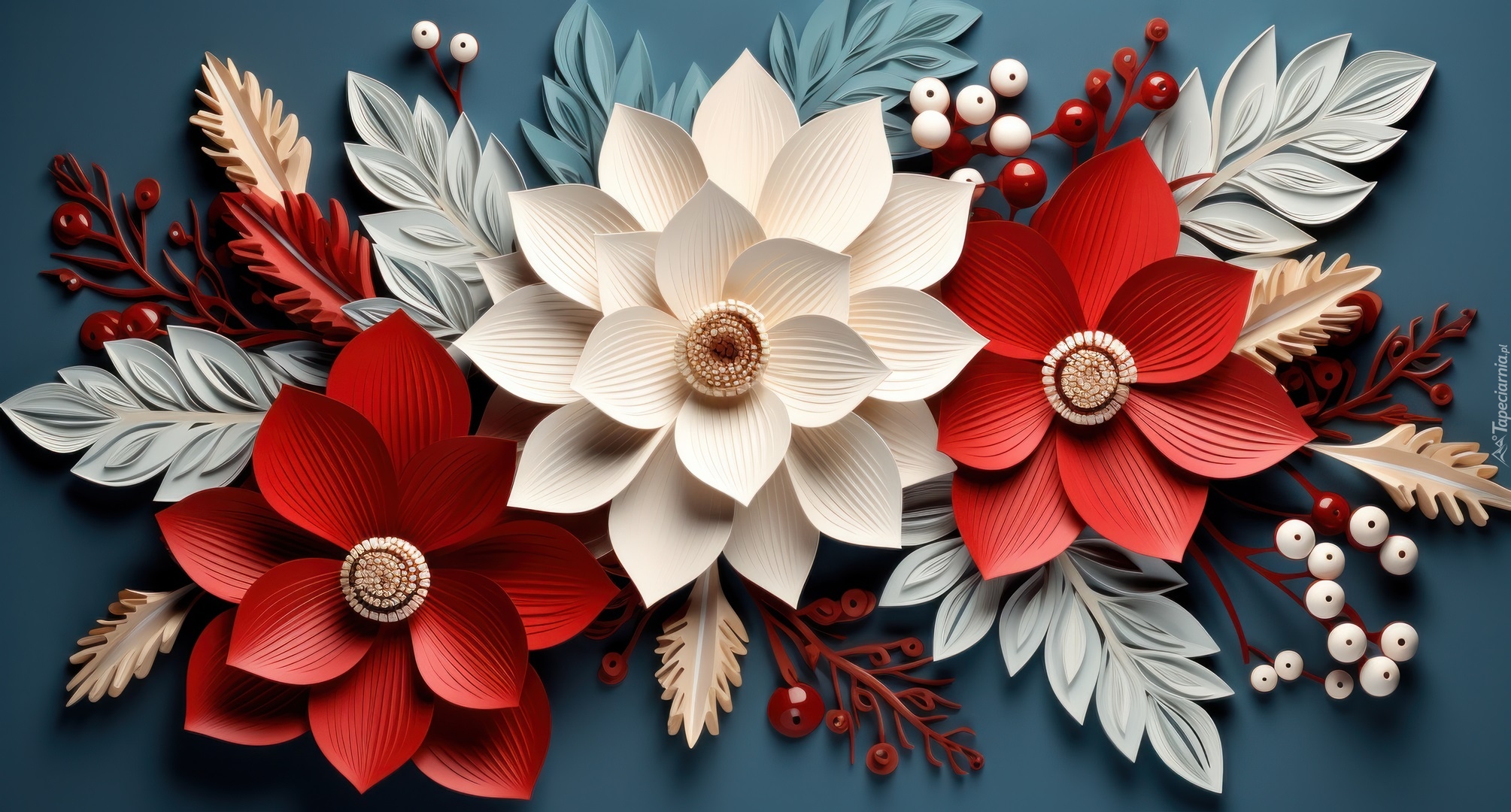 Edytor tapety: Białe i czerwone papierowe kwiaty w grafice