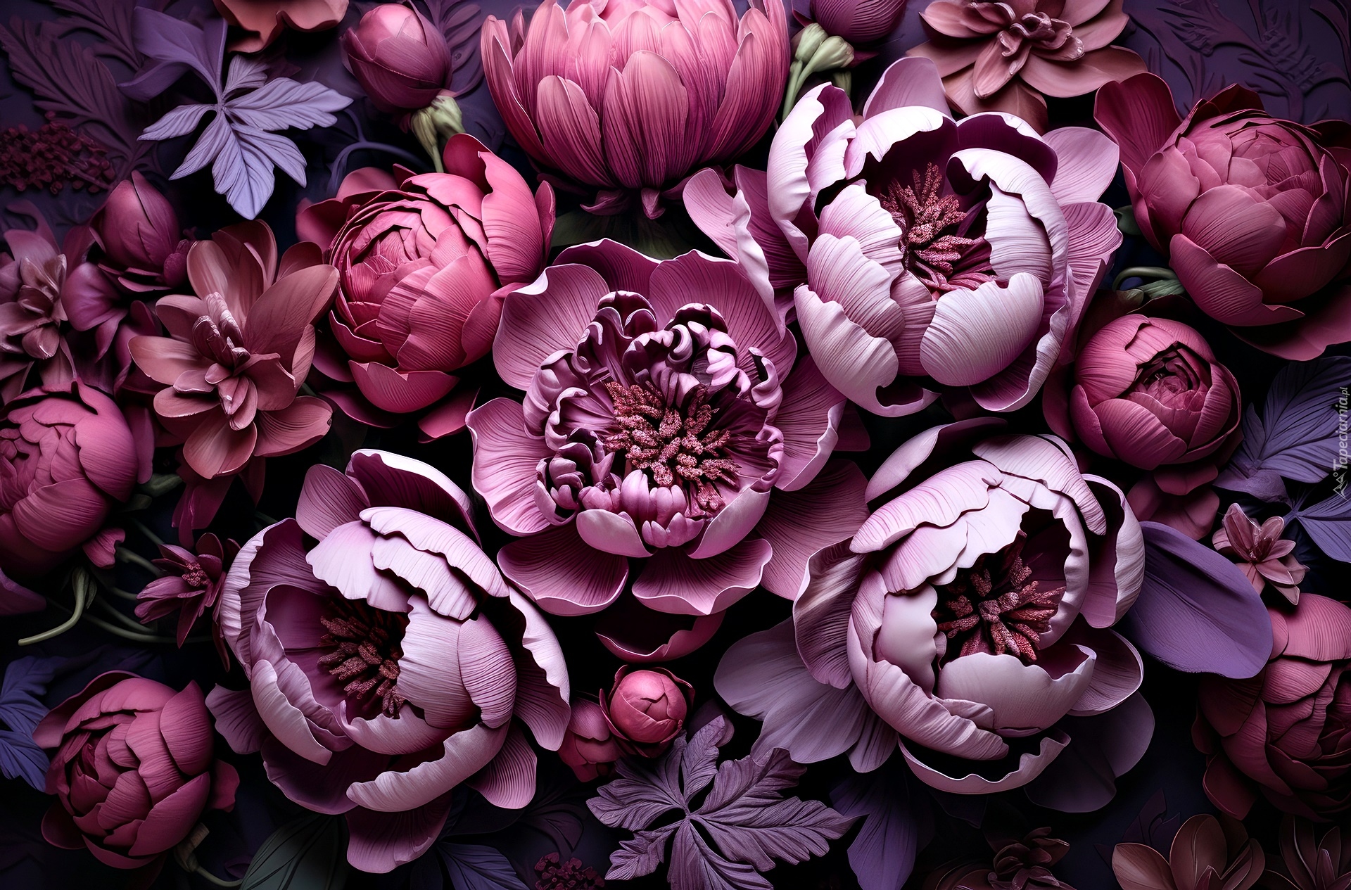 Edytor tapety: Bordowe piwonie w grafice
