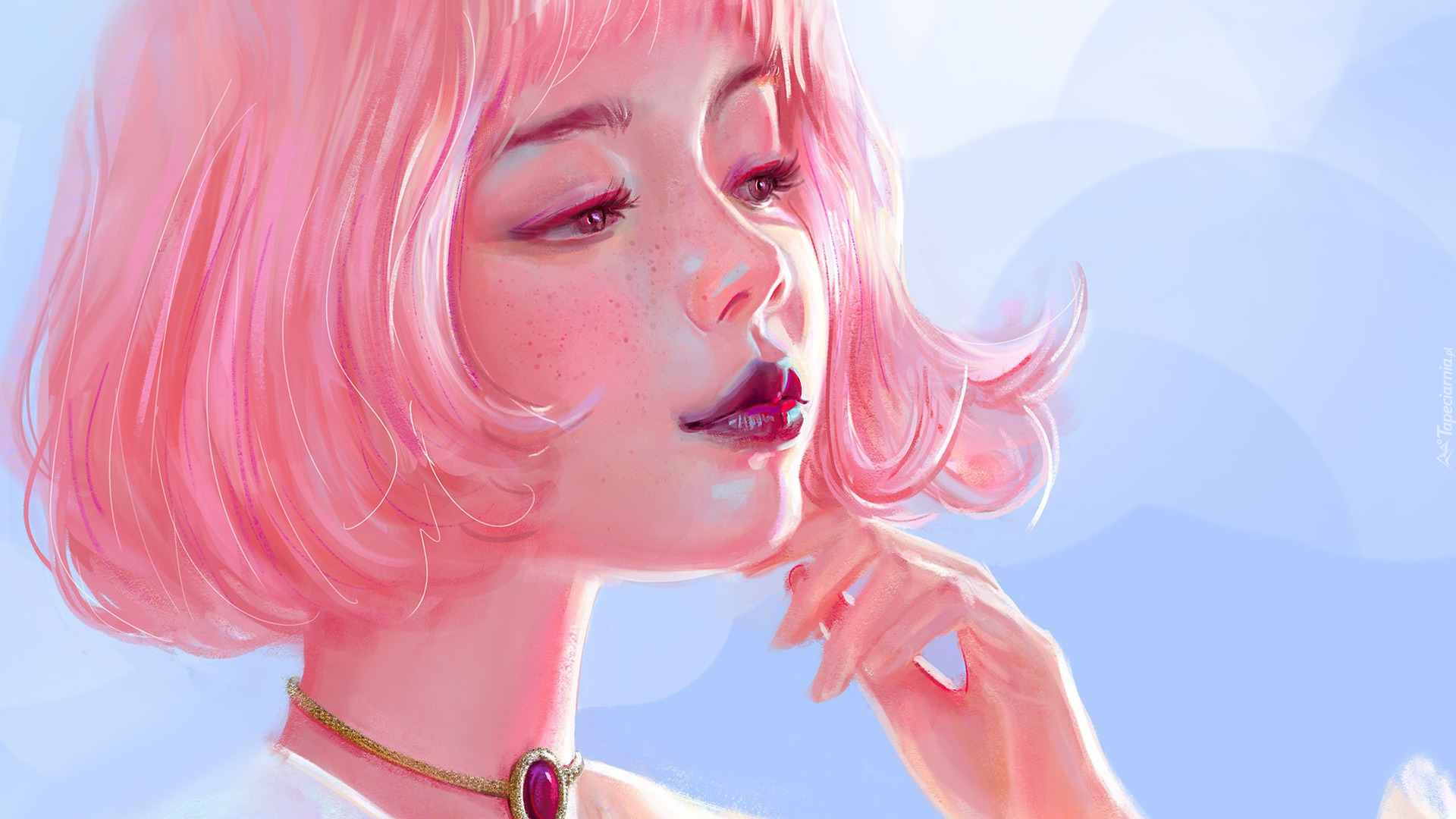 Edytor tapety: Dziewczyna z różowymi włosami w grafice