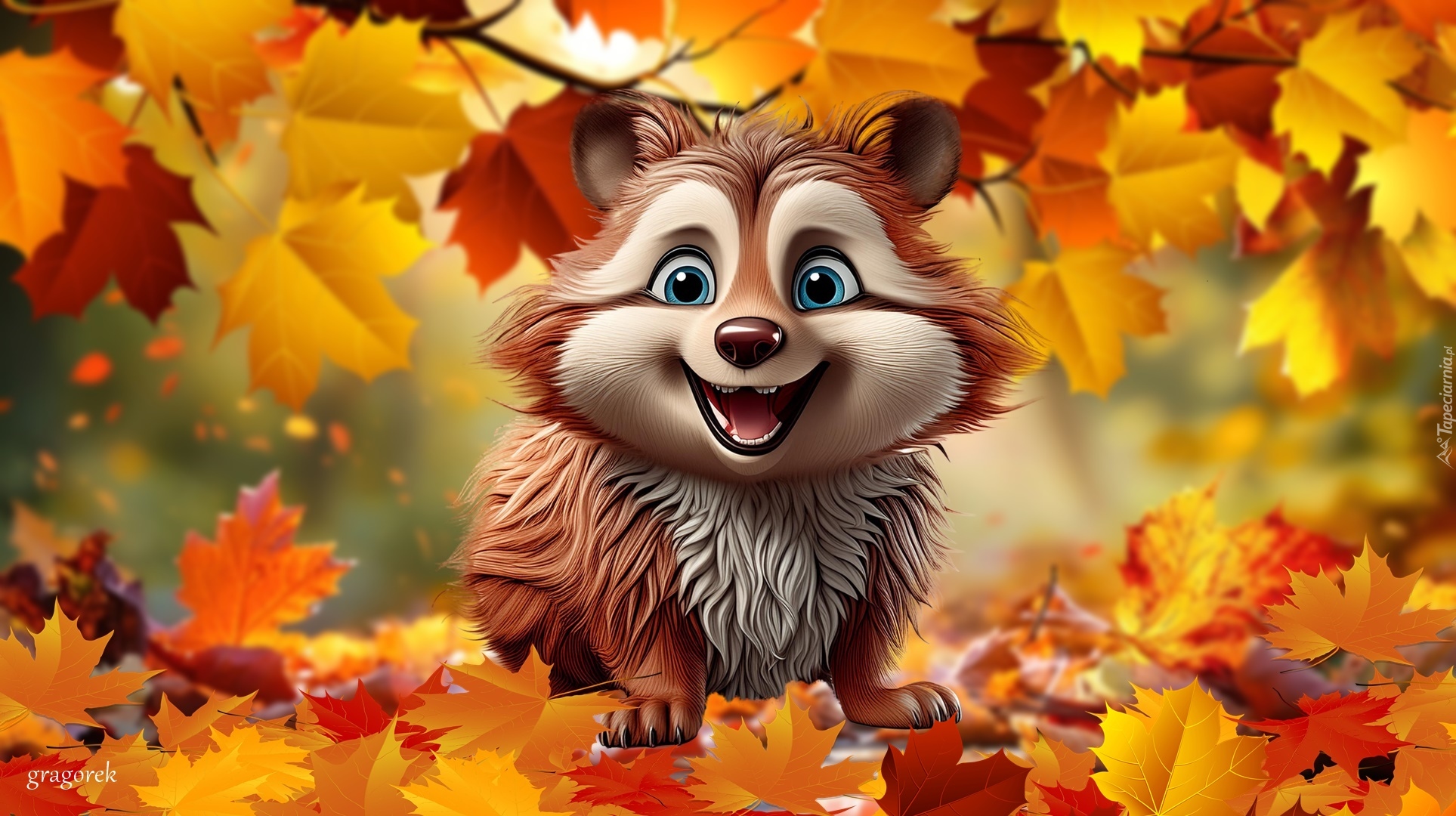 Edytor tapety: Zabawne zwierzę na jesiennych liściach w grafice