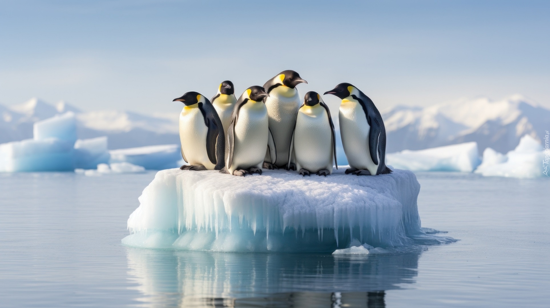 Edytor tapety: Pingwiny na krze lodowej w morzu