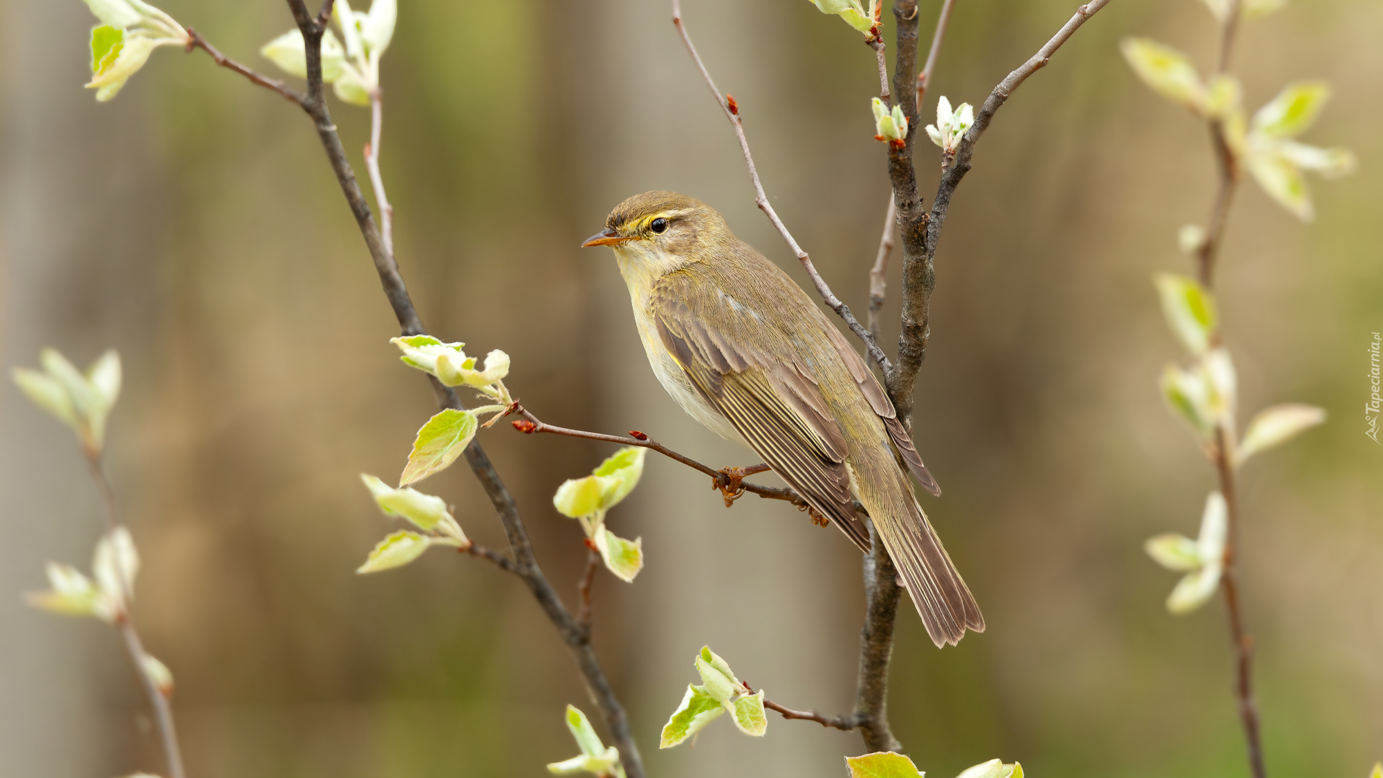 Edytor tapety: Piecuszek na gałązce z listkami