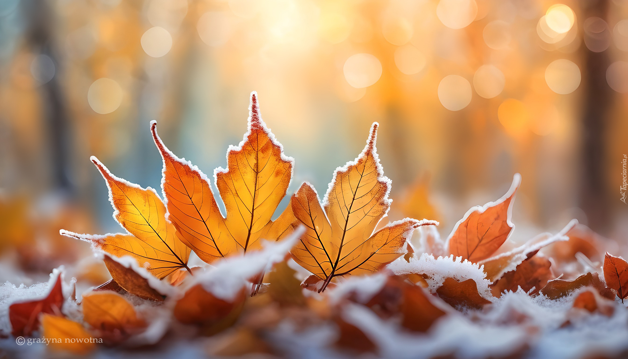 Edytor tapety: Szron na jesiennych liściach w grafice