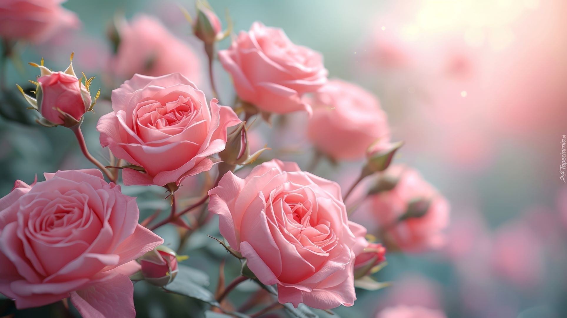 Edytor tapety: Rozkwitnięte różowe róże z pąkami