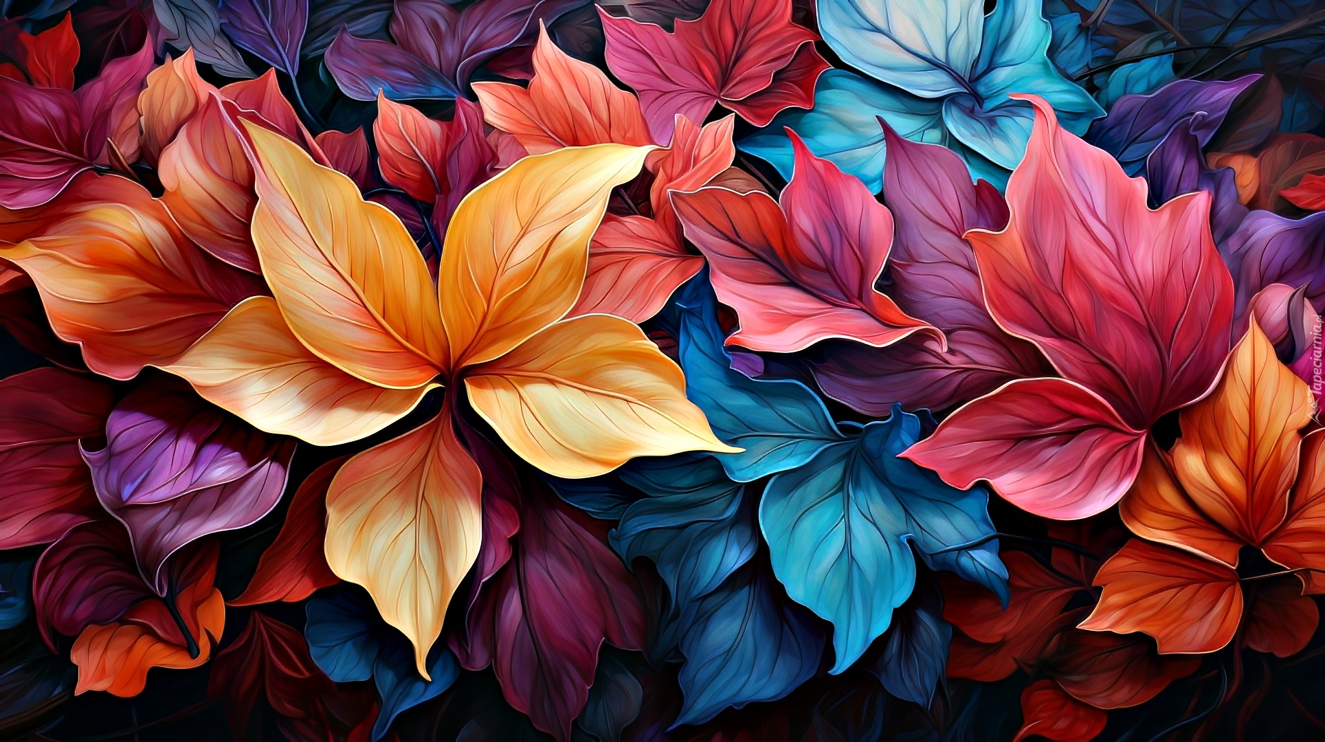 Edytor tapety: Różne rodzaje kolorowych jesiennych liści w grafice