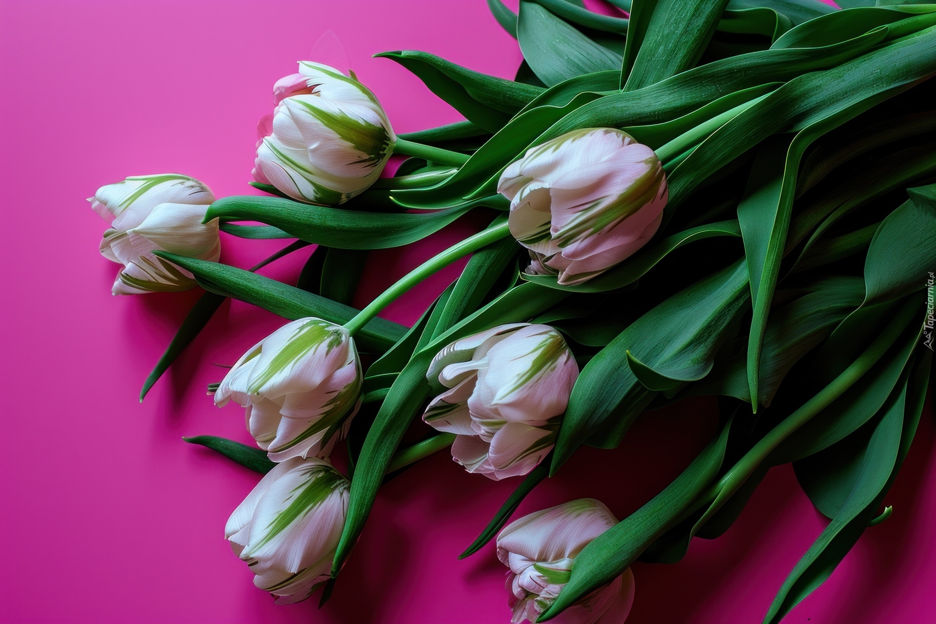 Edytor tapety: Biało-zielone tulipany