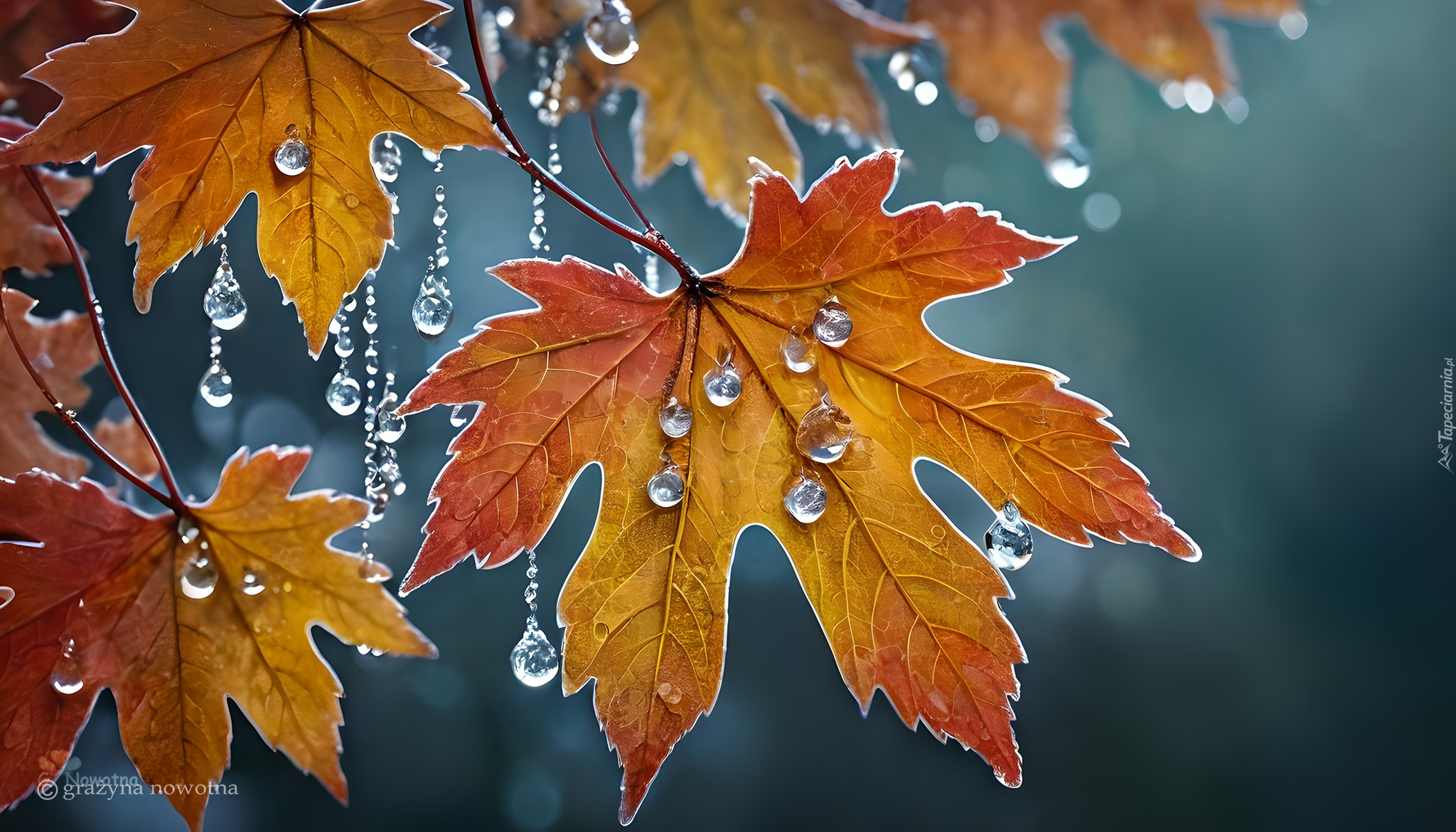Edytor tapety: Krople na pożółkłych jesiennych liściach