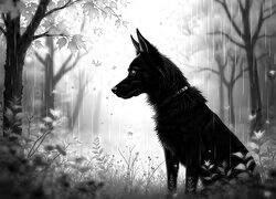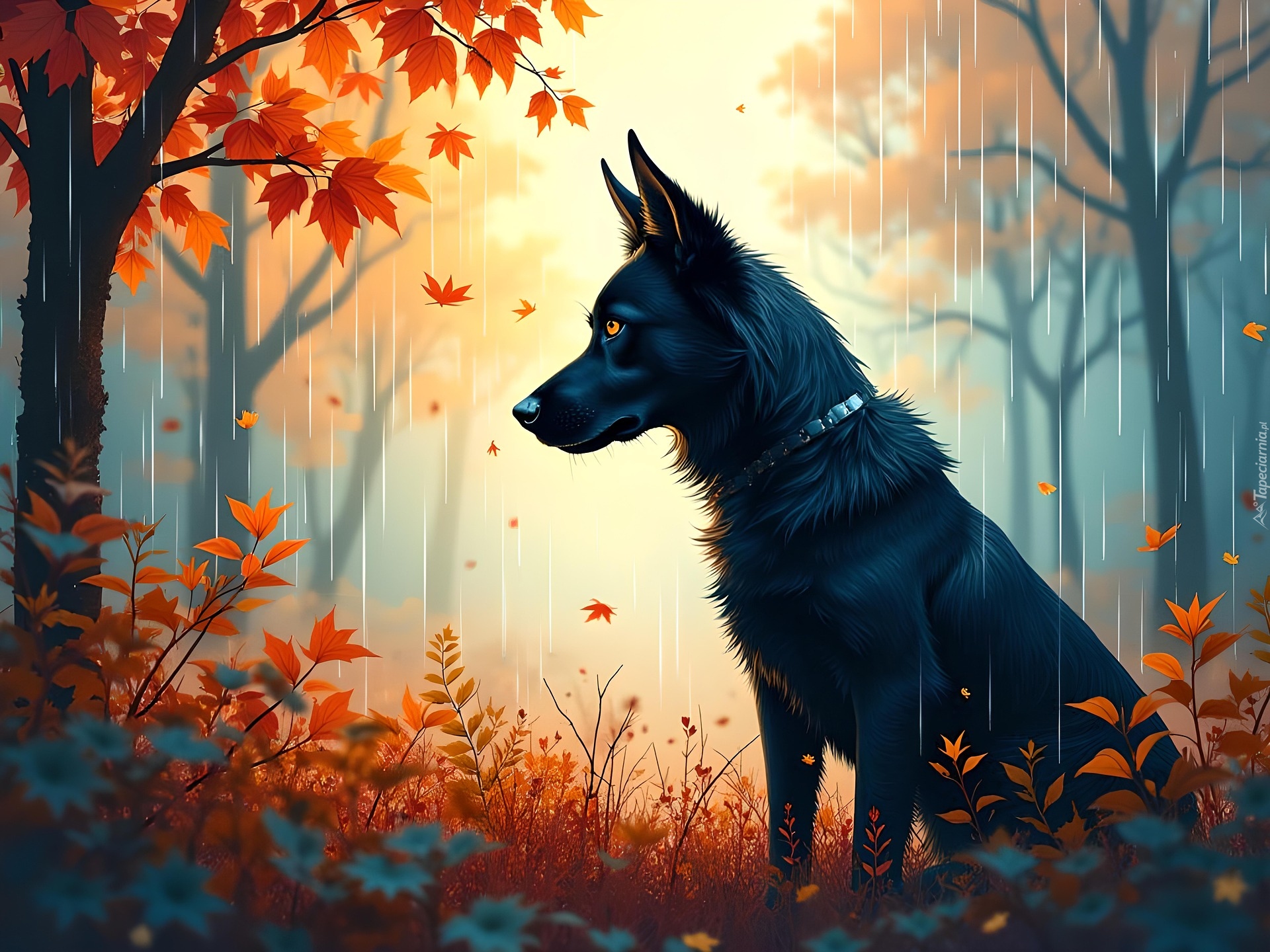 Edytor tapety: Grafika z czarnym psem w deszczu