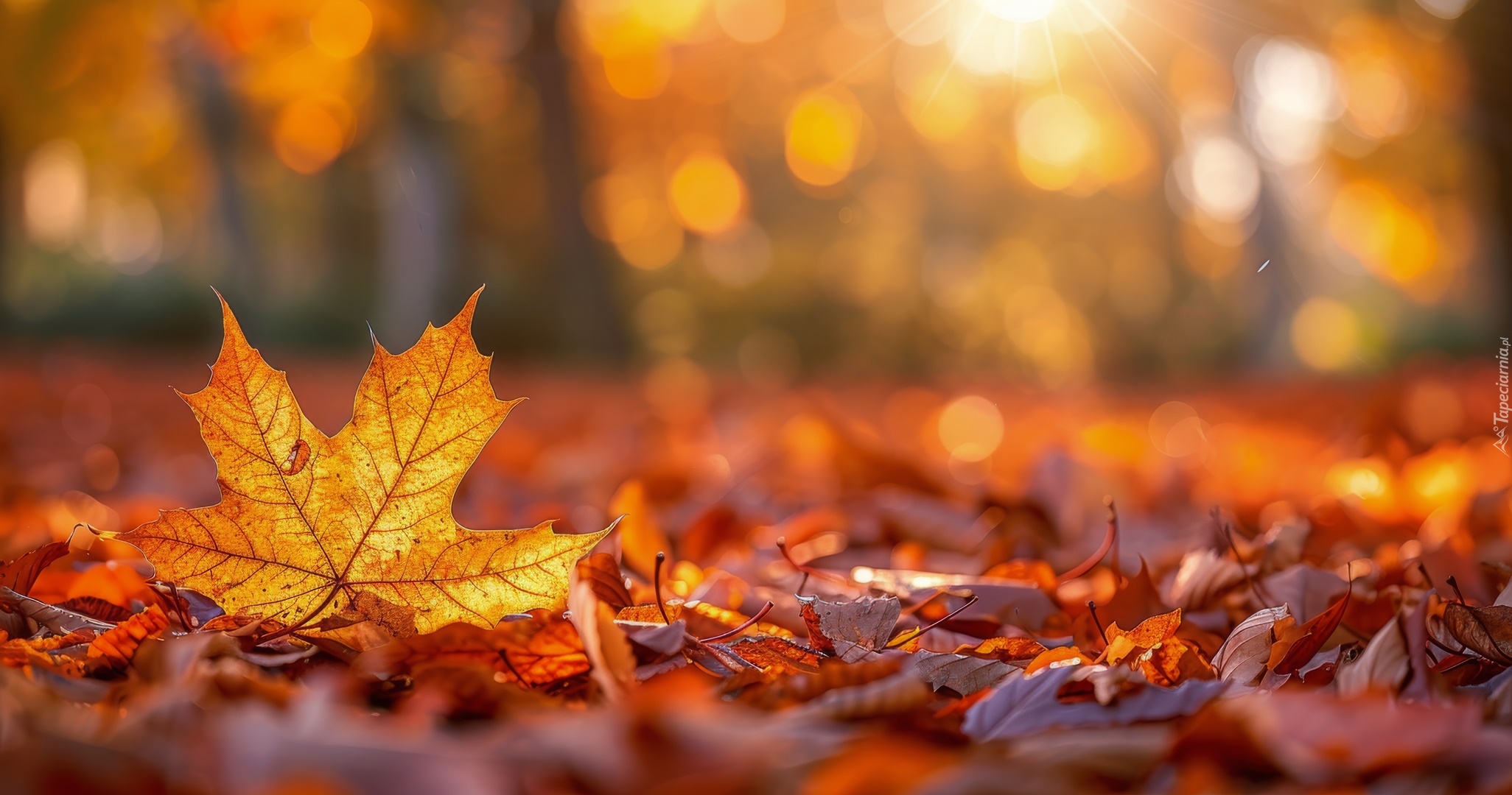Edytor tapety: Opadłe jesienne liście na rozmytym tle