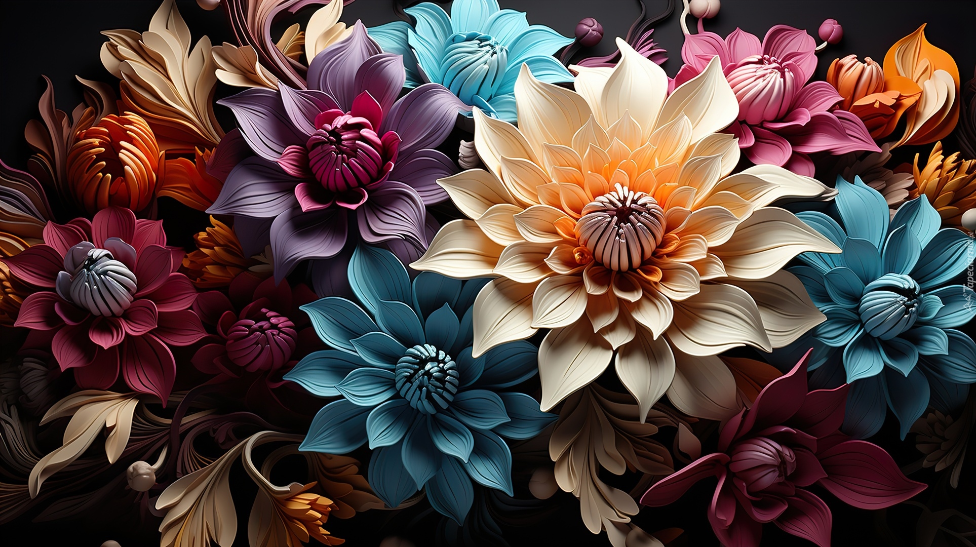 Edytor tapety: Różnokolorowe rozwinięte kwiaty w grafice